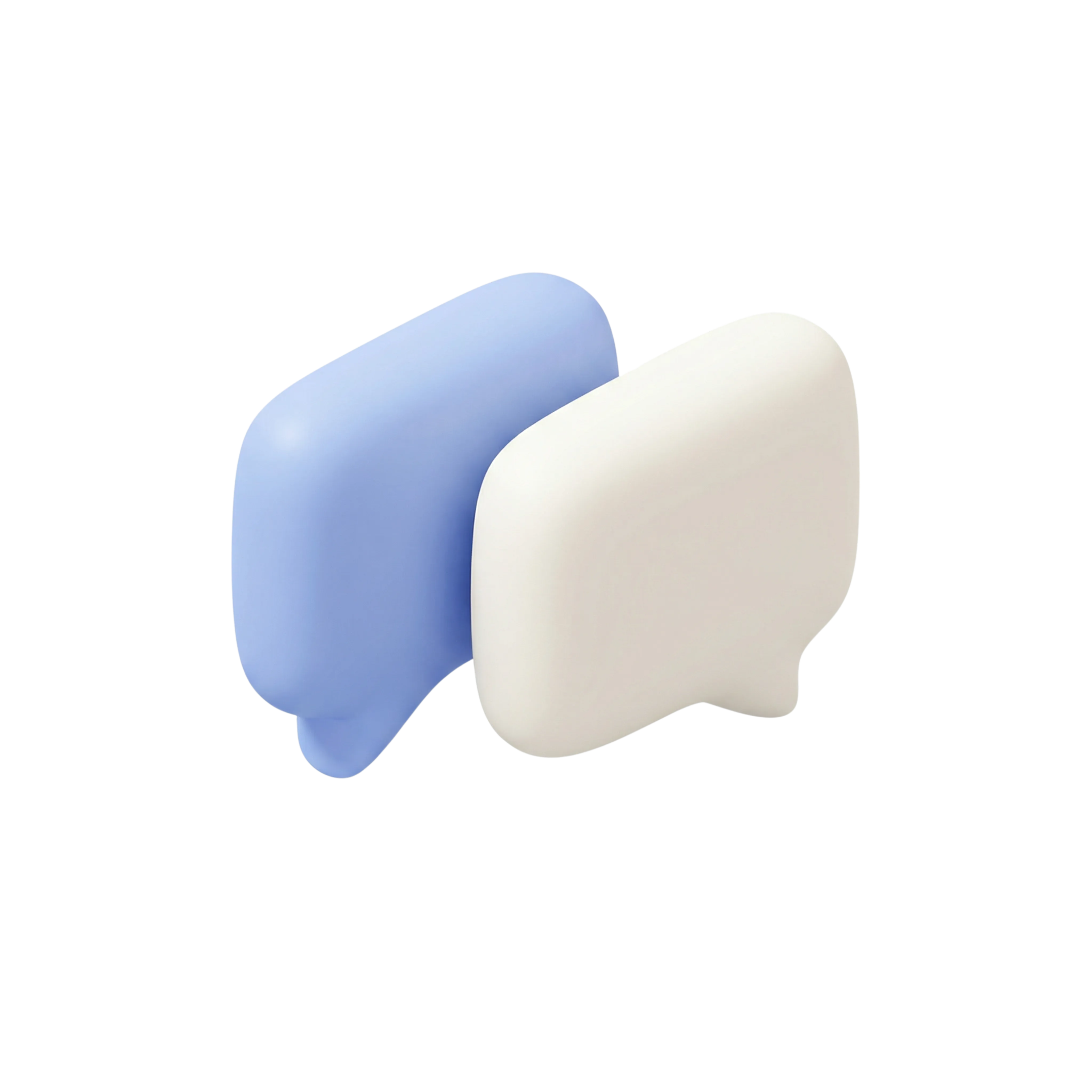A visually clean 3D icon of two chat bubbles rendered with a soft matte texture. The design features a minimalistic and modern aesthetic, ideal for use in user interface elements, social media graphics, app icons, and communication-based presentations.