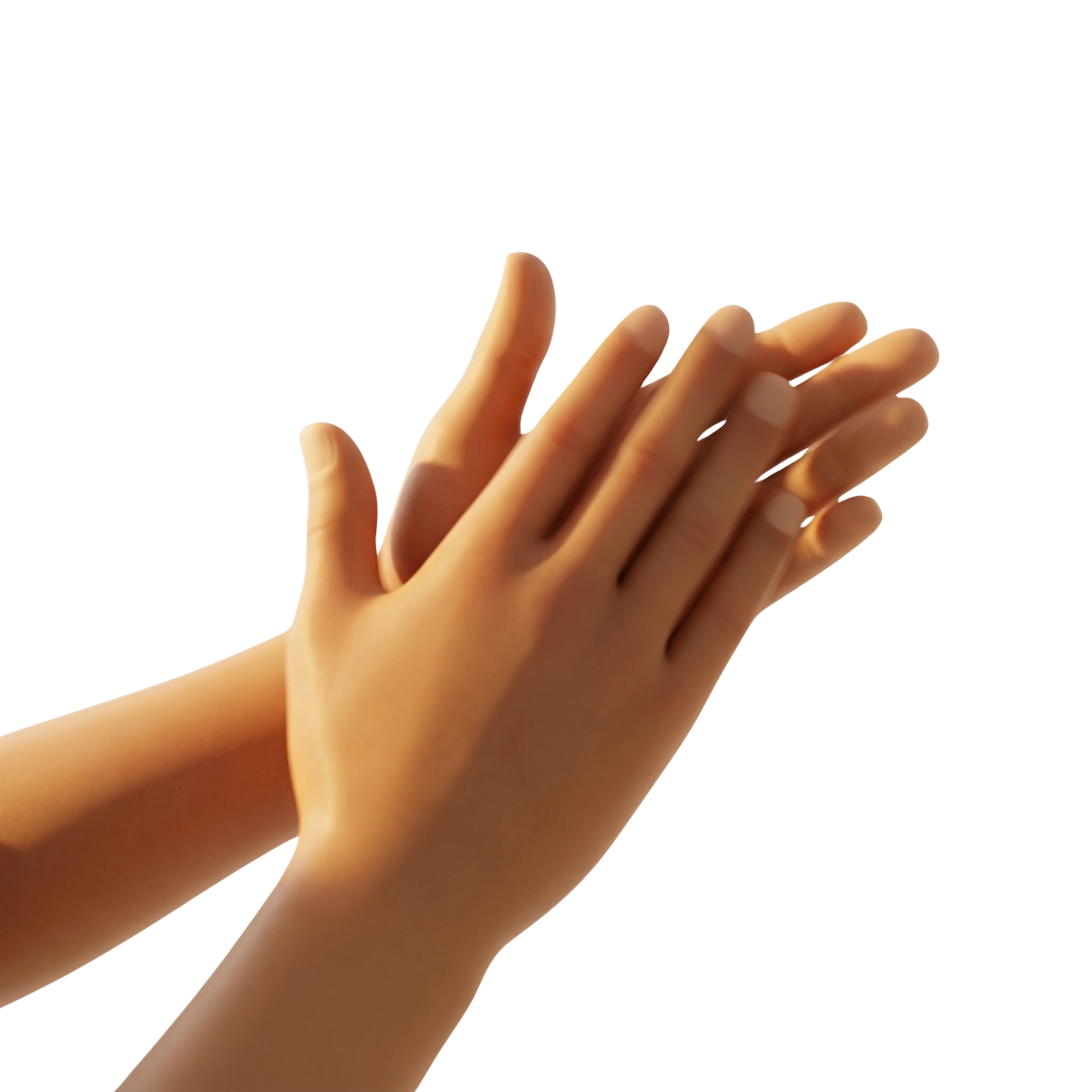A stylized 3D rendering of two clapping hands with a soft matte finish, ideal for use in digital stickers, mobile UI elements, reaction icons, or educational content. The hands have a neutral skin tone and are rendered in a cartoon-like simplified design.