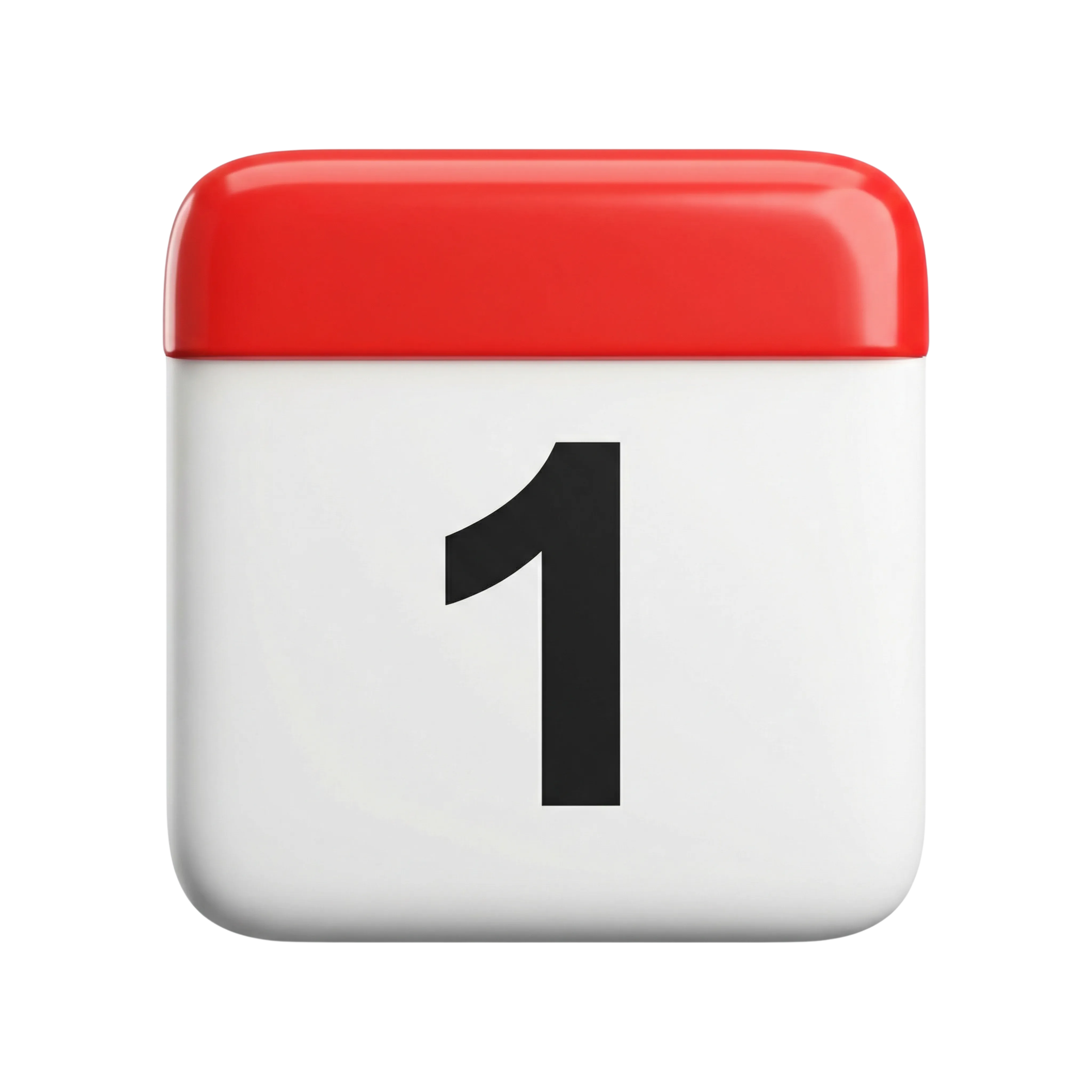 A high-resolution 3D rendered calendar date icon featuring a bold number '1' on a smooth white base with a glossy red top. This visually distinct element is useful for digital calendars, mobile apps, UI/UX projects, or productivity-related interfaces.