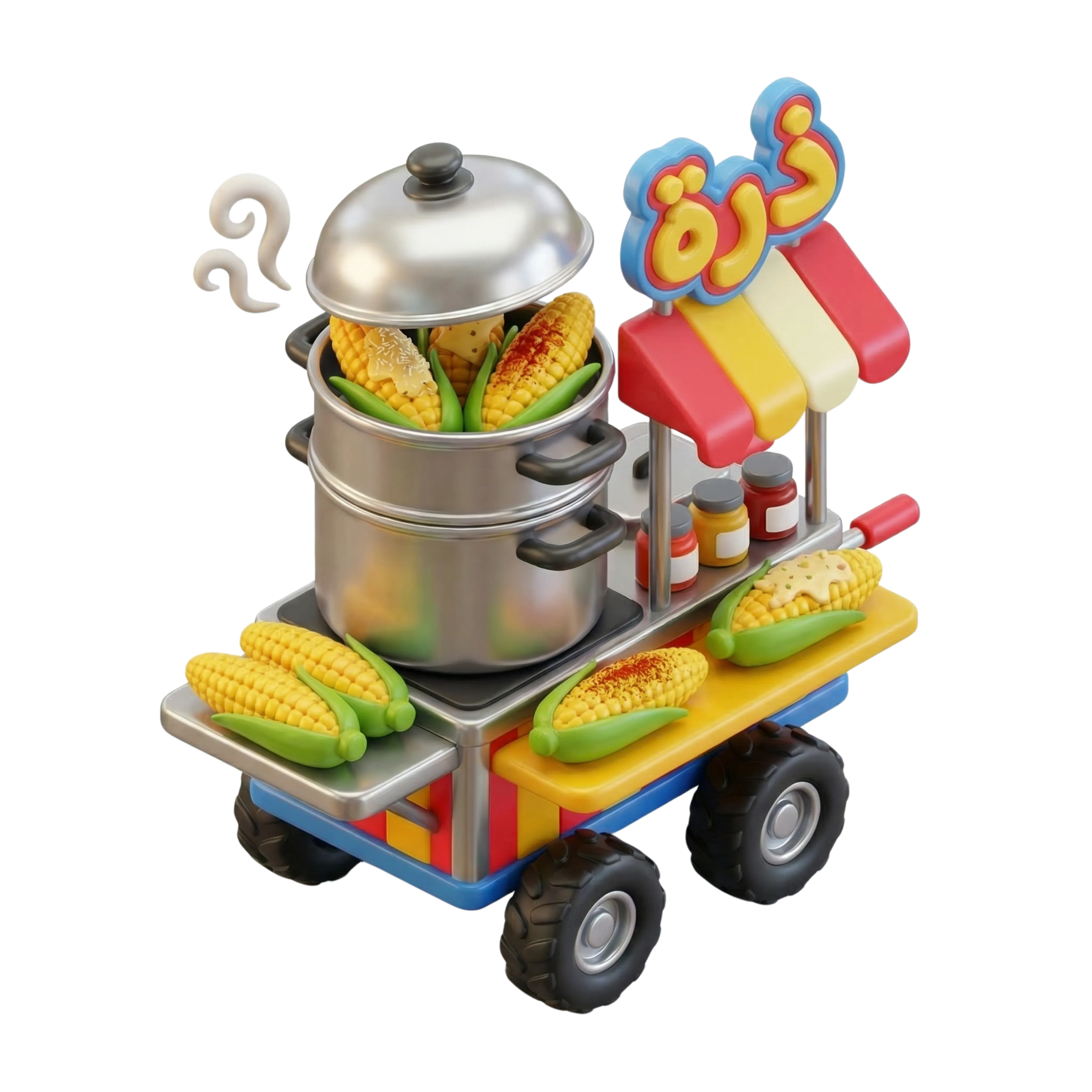 مجسم ثلاثي الأبعاد لعربة ذرة عربية للوجبات السريعة
