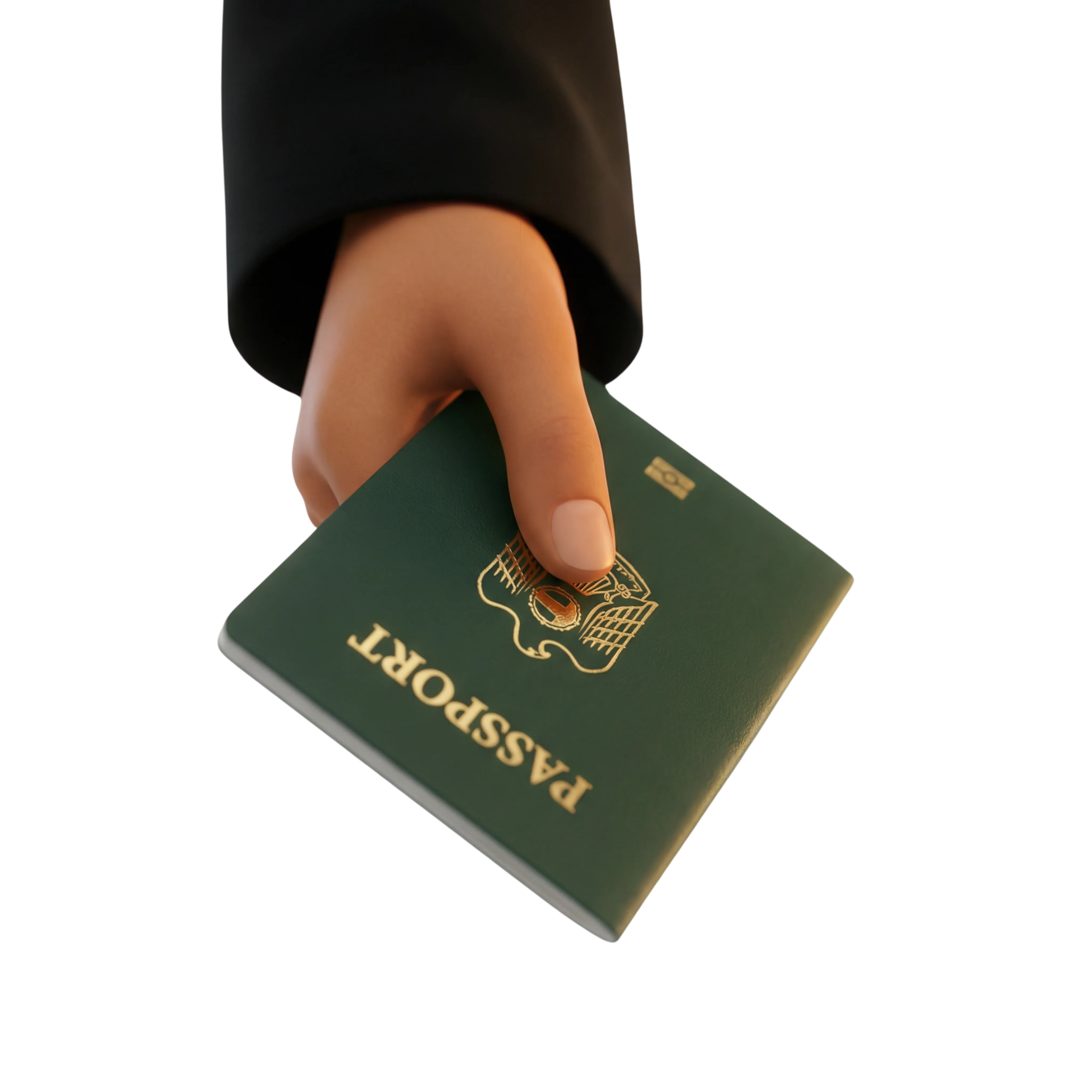 3D Render of Hand Holding Saudi Passport