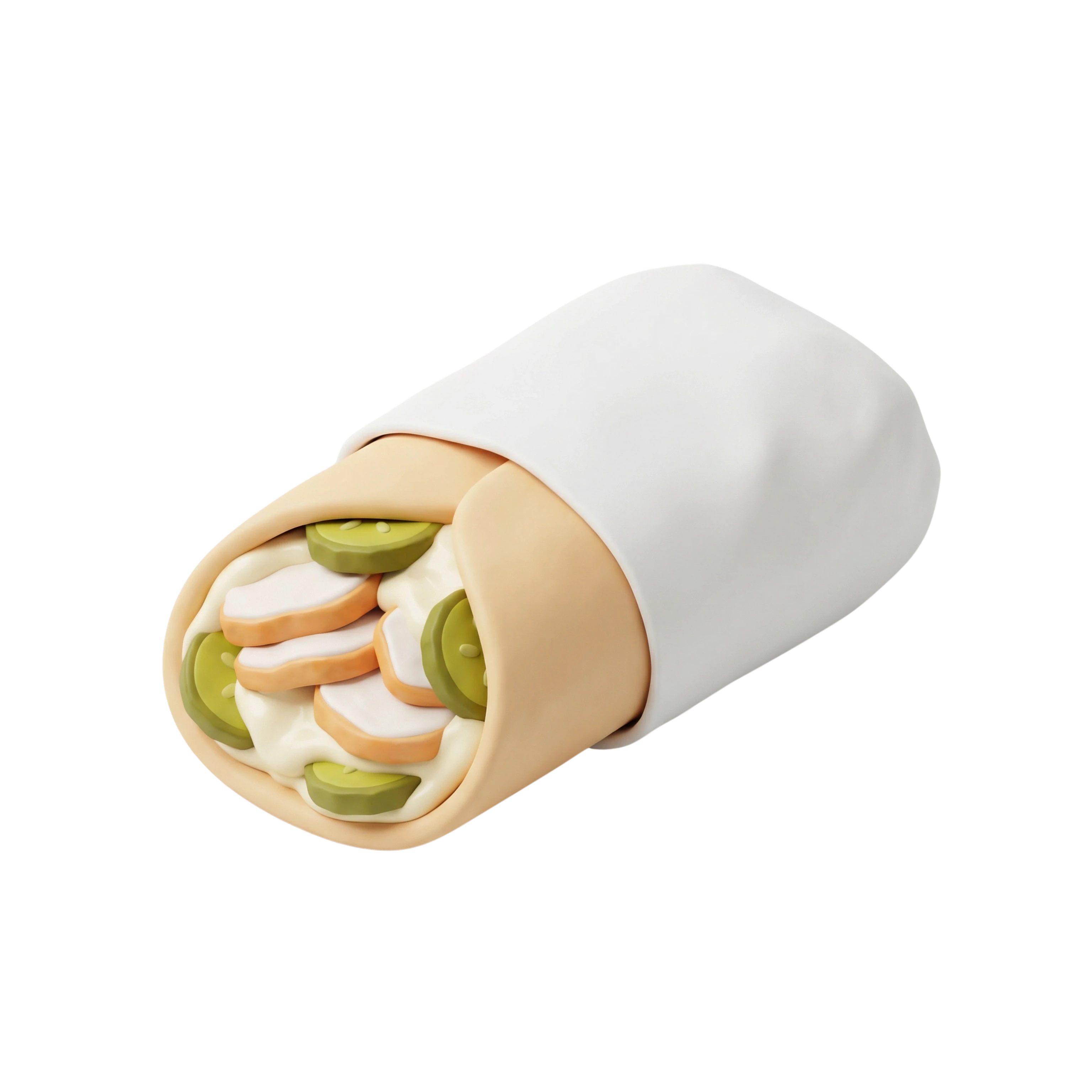 شاورما دجاج شهية محشوة بشرائح دجاج مشوي متبل، مغطاة بصوص الثوم الكريمي والمخلل الحامض، داخل خبز بيتا طري ودافئ. كل قضمة غنية بنكهة شرق أوسطية أصيلة مع لمسة مدخنة وحموضة لذيذة.