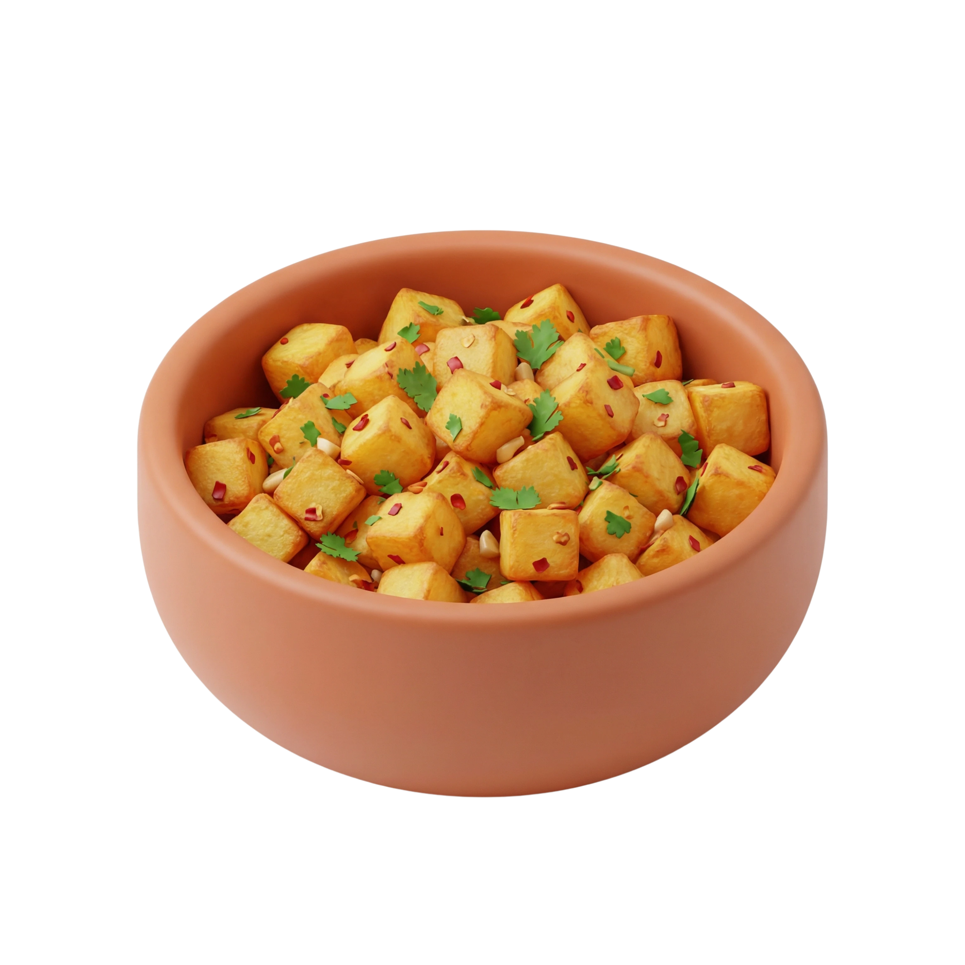Crispy fried potato cubes tossed with garlic, chili, lemon juice, and fresh cilantro—this classic Lebanese side dish delivers a perfect balance of heat, zest, and savory crunch in every bite.