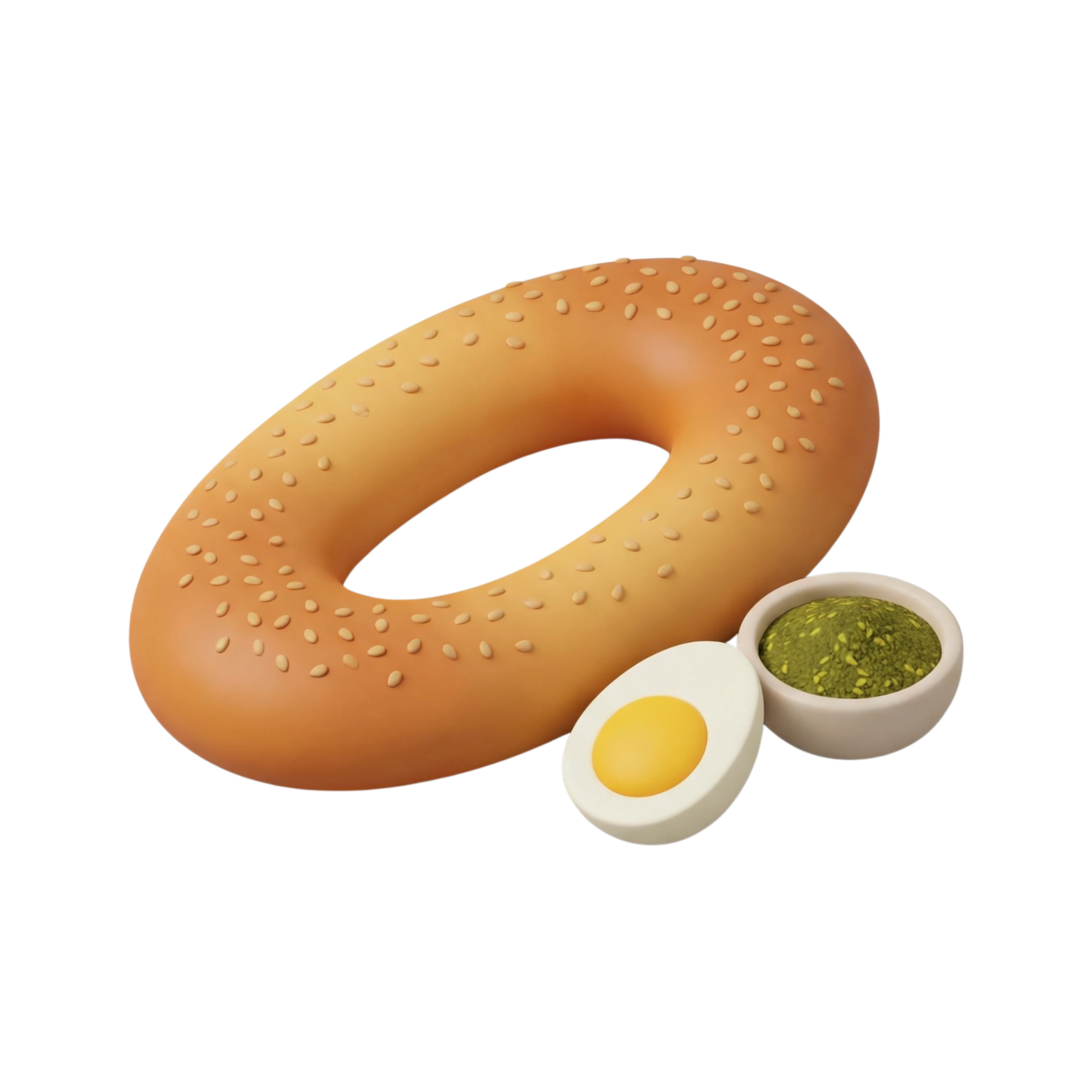 كعك القدس هو خبز فلسطيني لذيذ مغطى بالسمسم، يتميز بقشرته المقرمشة وداخله الهش. يُقدم تقليديًا على شكل حلقات بيضاوية، وغالبًا ما يُرافقه البيض المسلوق والزعتر البلدي. يجمع الطعم بين نكهة السمسم الغنية وعجينة الخبز الطرية ليمنحك طعامًا شعبيًا دافئًا ومُشبعًا.