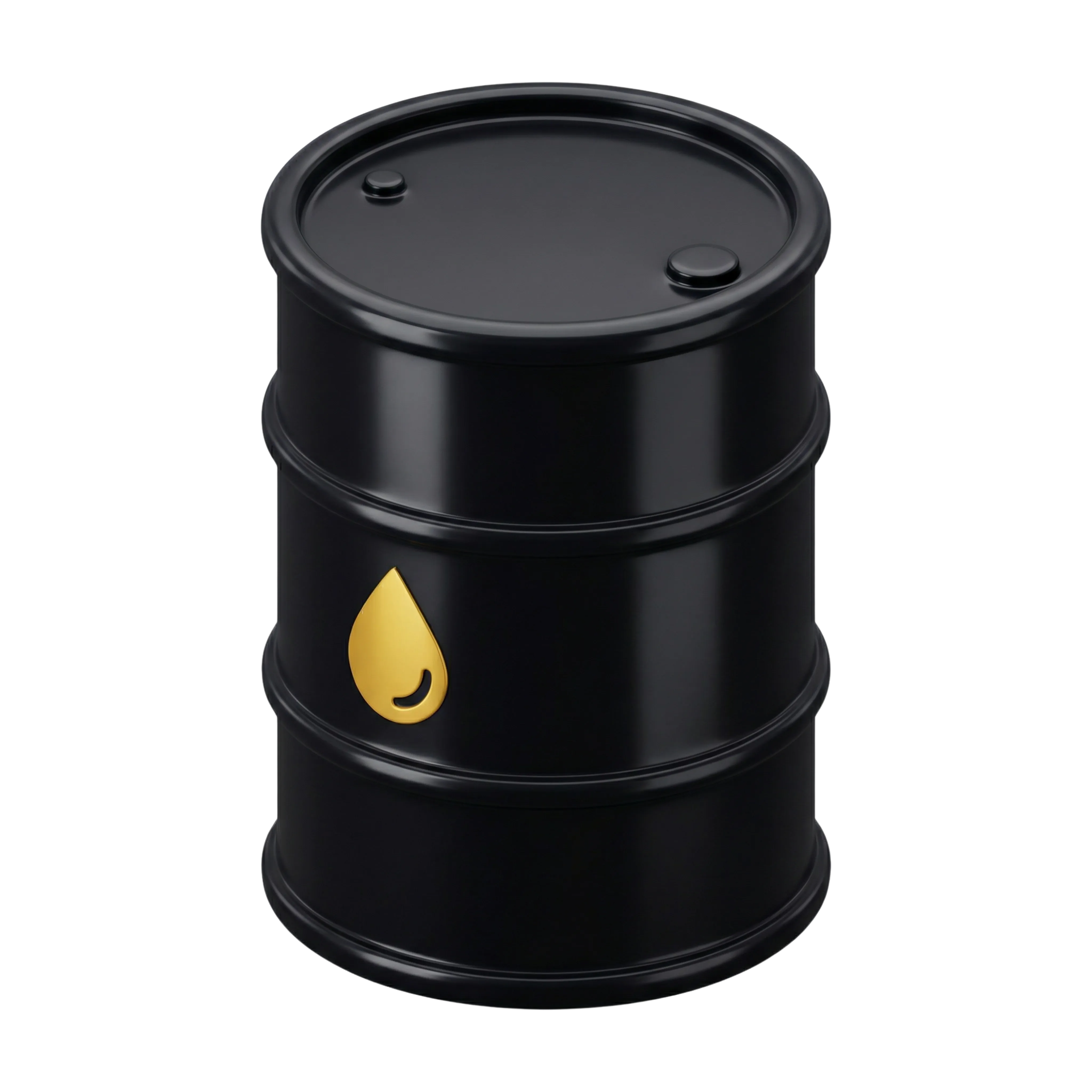 مجسم ثلاثي الأبعاد عالي الجودة لبرميل نفط بسطح معدني لامع باللون الأسود، مزود بأيقونة قطرة زيت صفراء. مناسب للاستخدام في مشاهد أو عناصر واجهة صناعية، اقتصادية، بيئية، أو متعلقة بالطاقة.