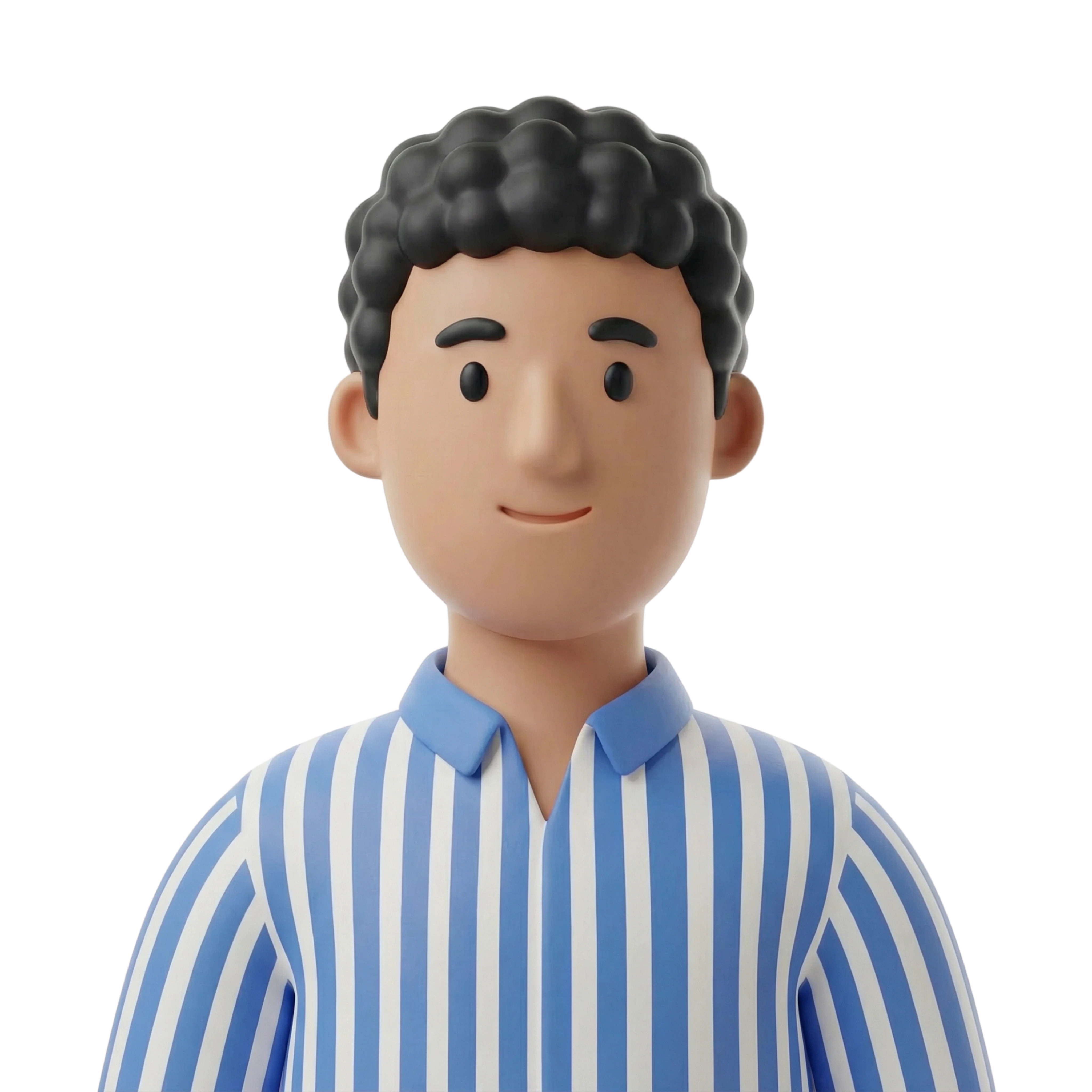 شاب محترف بملامح ودودة يرتدي قميصًا مخططًا بألوان هادئة، يعكس نمط الحياة الحضرية الحديثة وبيئة العمل غير الرسمية.