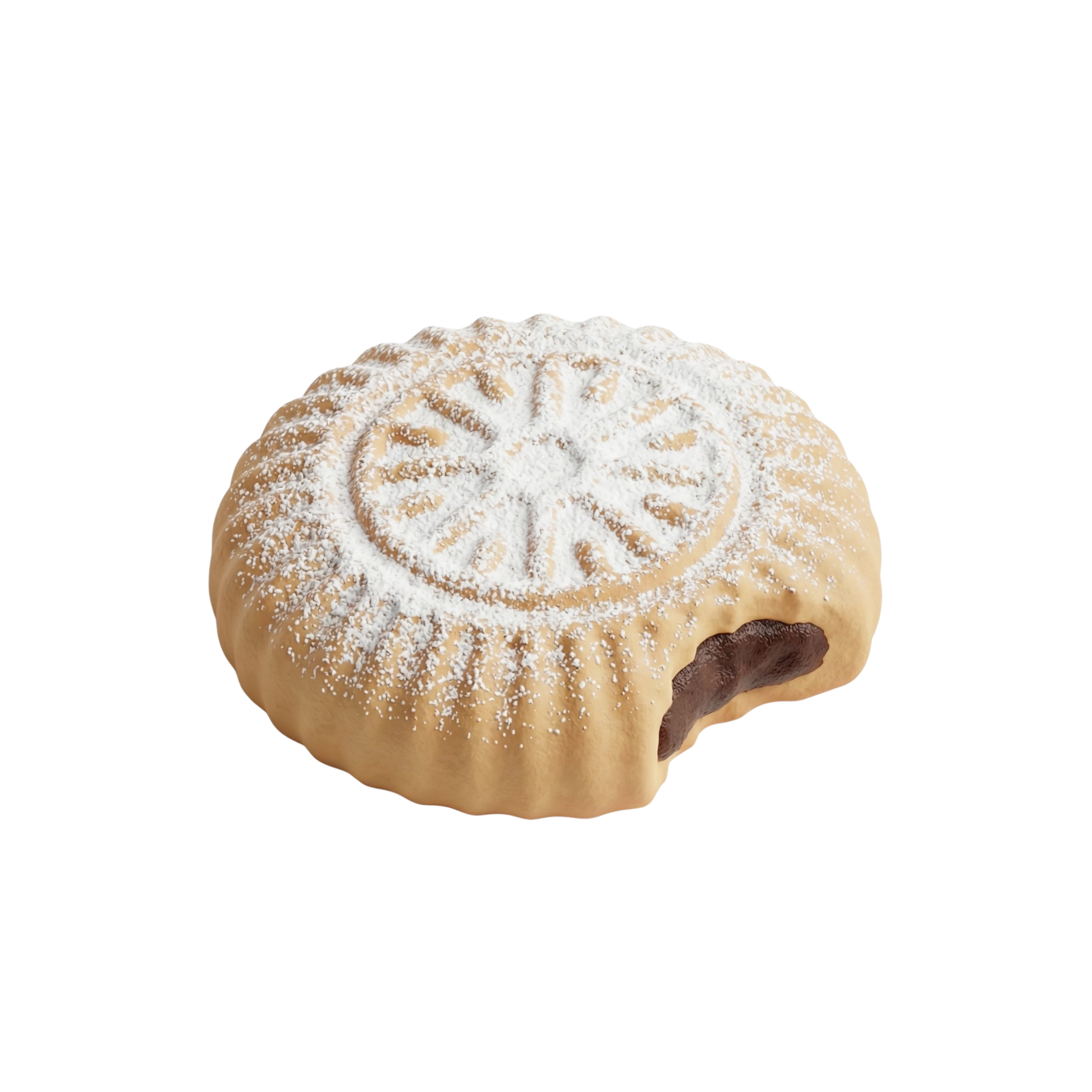 This traditional Maamoul cookie features a buttery, melt-in-your-mouth semolina crust filled with a sweet, spiced date paste. Dusted with powdered sugar, it offers a nostalgic balance of crumbly texture and luxurious caramel-like center, perfect for festive occasions.