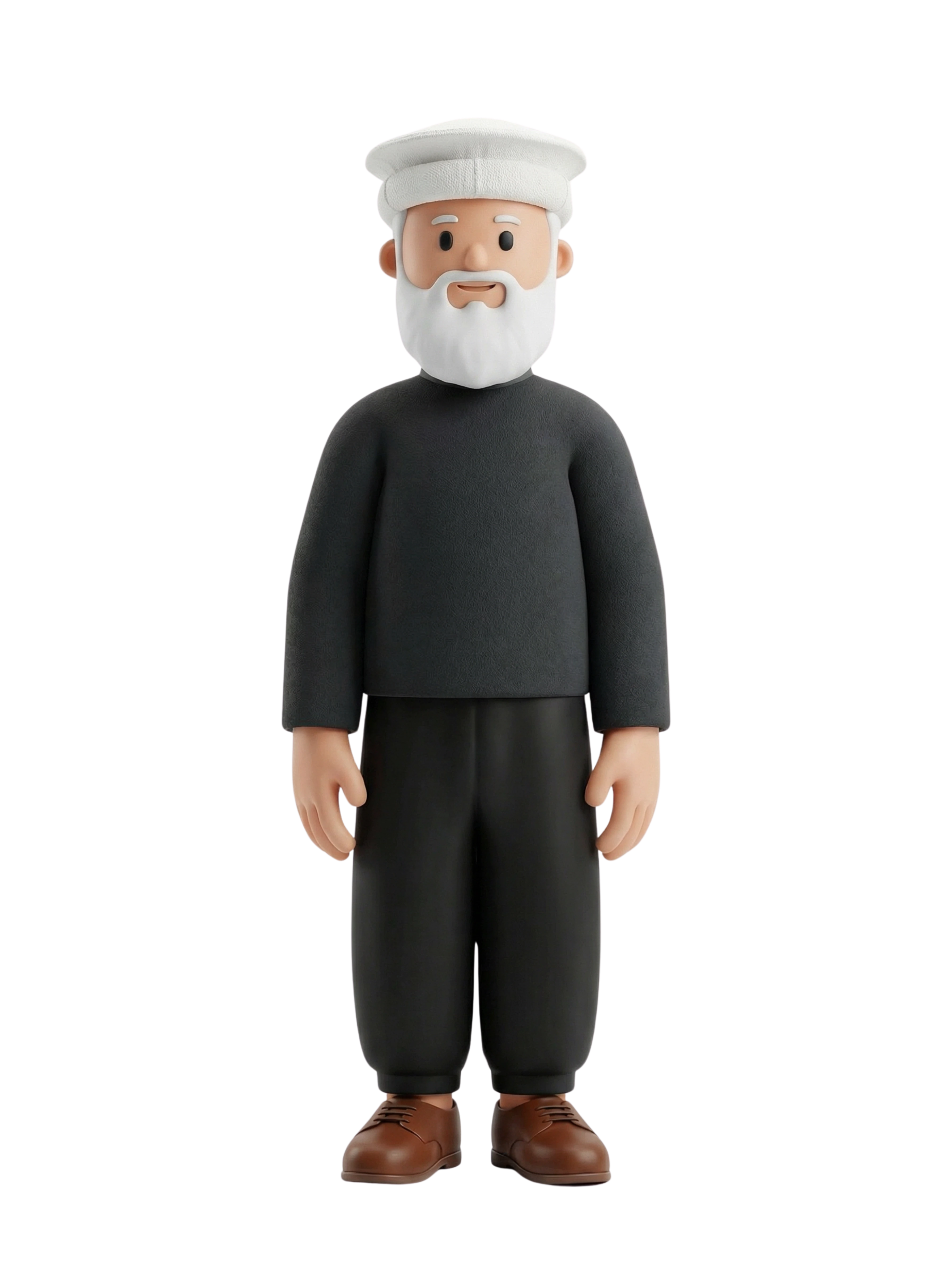 A respected Druze elder stands with a composed posture, dressed in traditional black garments and the distinctive white 'Labbadeh' hat, symbolizing wisdom, spirituality, and heritage rooted in Lebanese mountain communities.