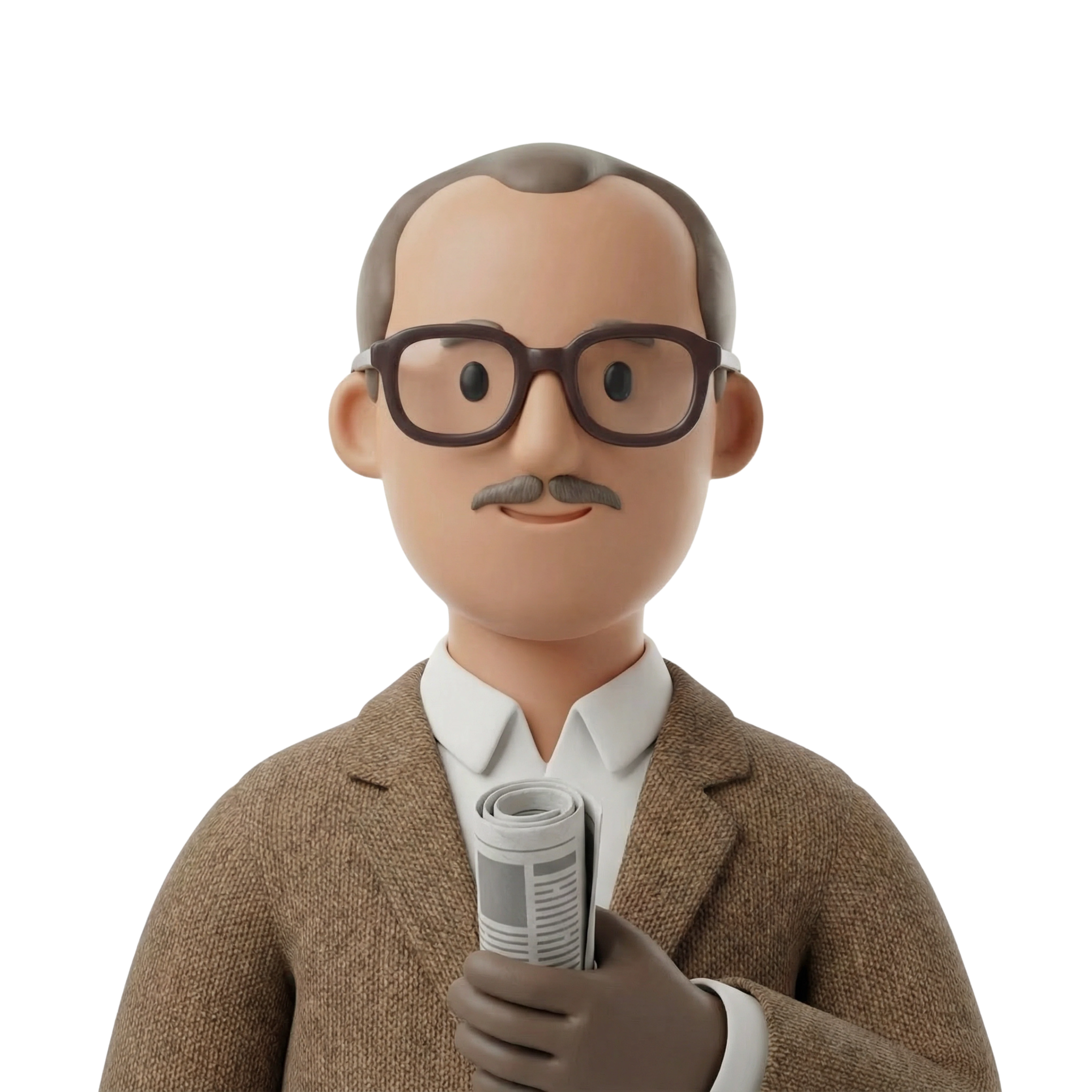 كاتب مصري متأمل يرتدي بدلة كلاسيكية ويُمسك بصحيفة، ما يعكس اهتمامه الثقافي وتركيزه على الصحافة والمعرفة.