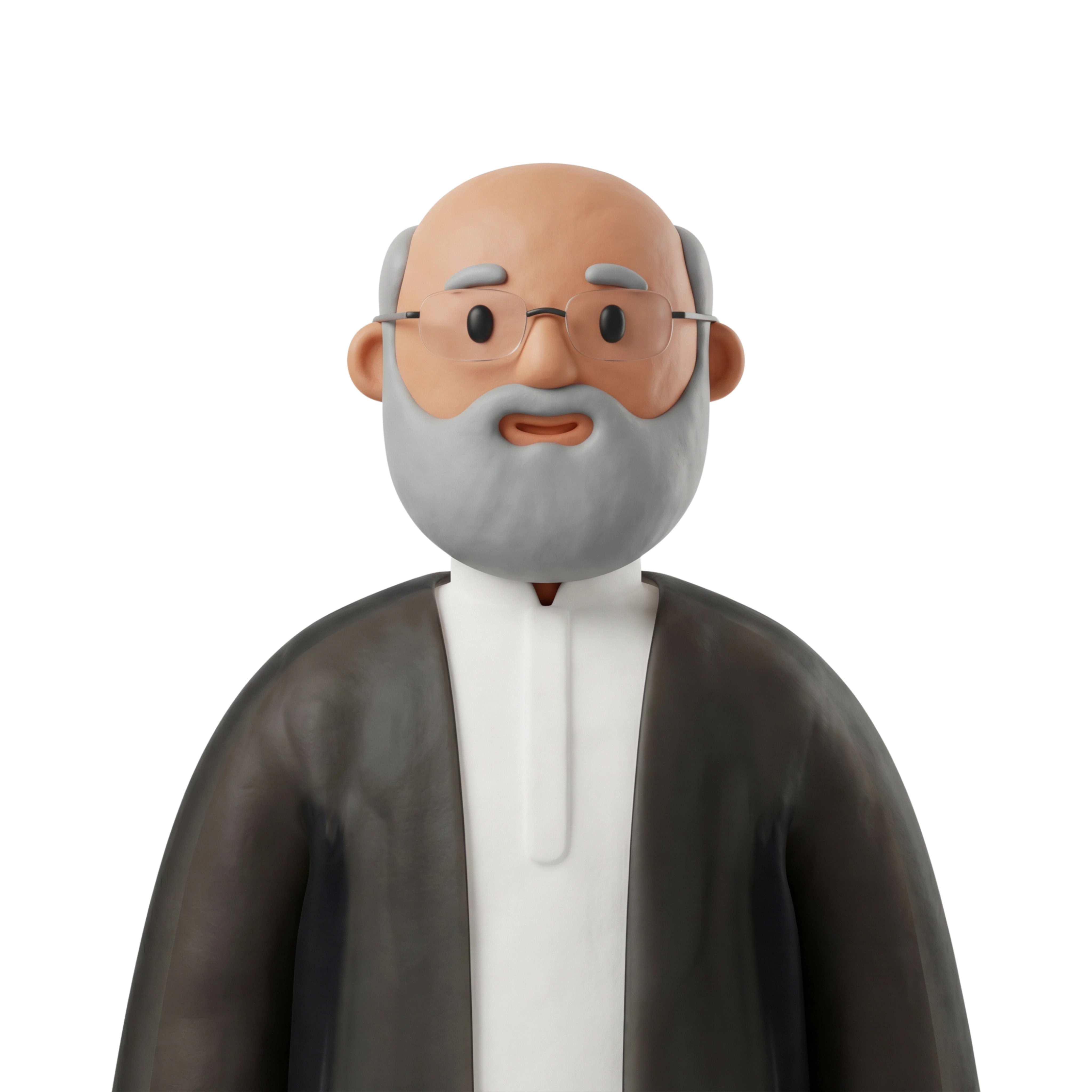 عالم مسن مميز يرتدي الزي الخليجي التقليدي، يجسد الحكمة والأصالة الثقافية، ويمثل التراث والإرشاد الفكري.