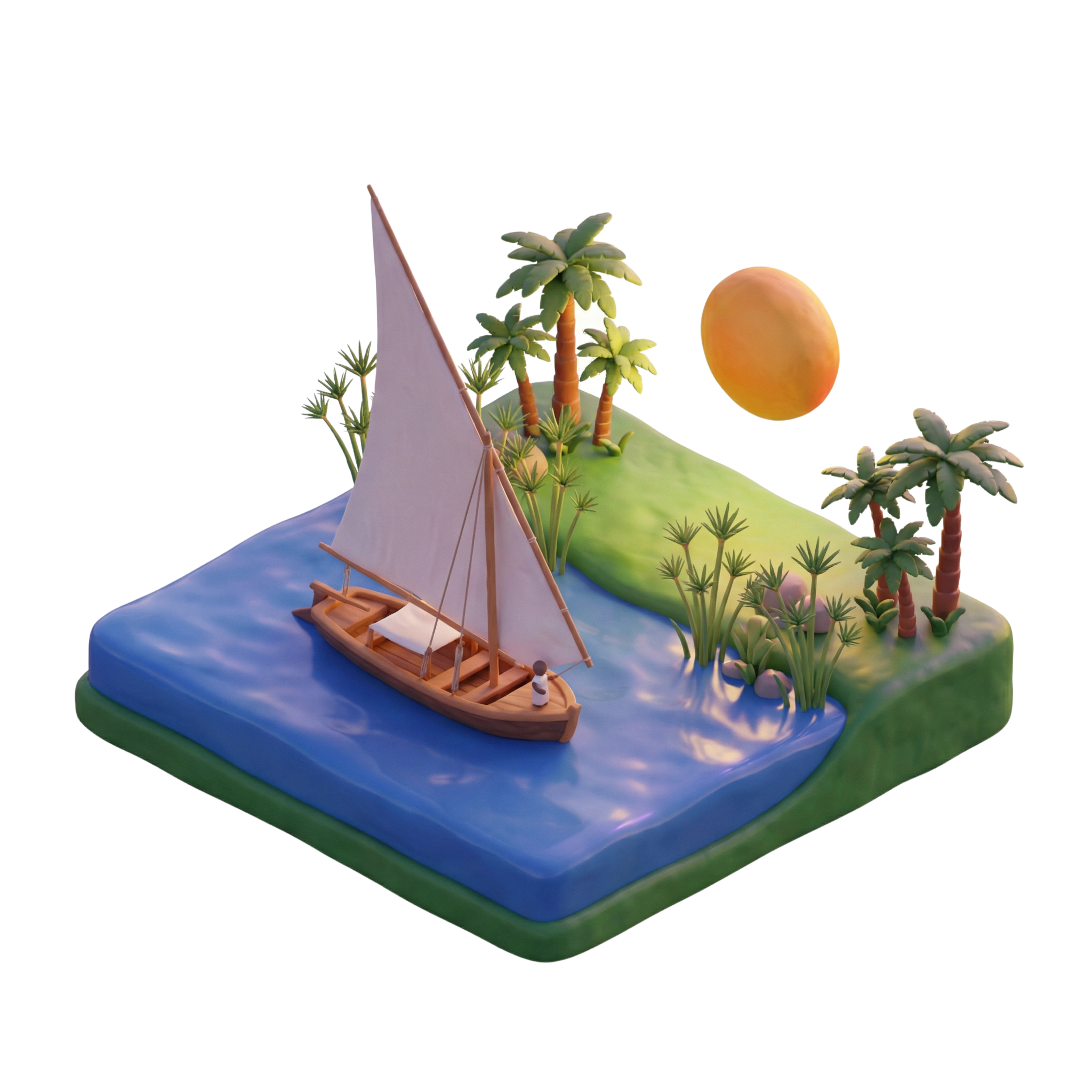 The felucca, a traditional wooden sailing boat, gracefully drifts along the tranquil waters of the Nile River—an enduring symbol of Egypt’s ancient and modern life. Surrounded by palm groves and reeds, this serene scene echoes centuries of river-based existence and trade, offering a timeless perspective on Egyptian culture.