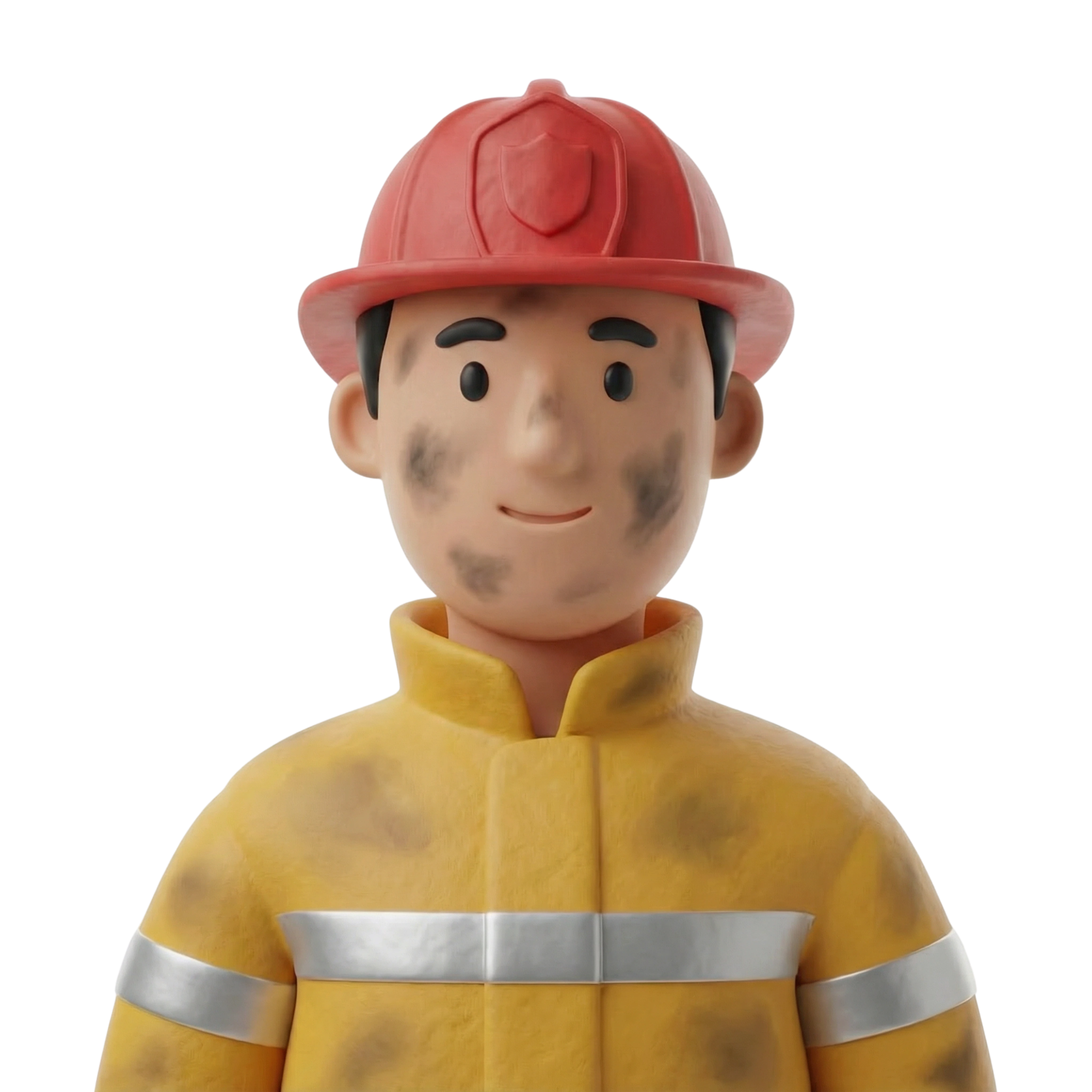 A brave firefighter stands ready in protective gear, complete with helmet and reflective yellow uniform, symbolizing courage and commitment to public safety.