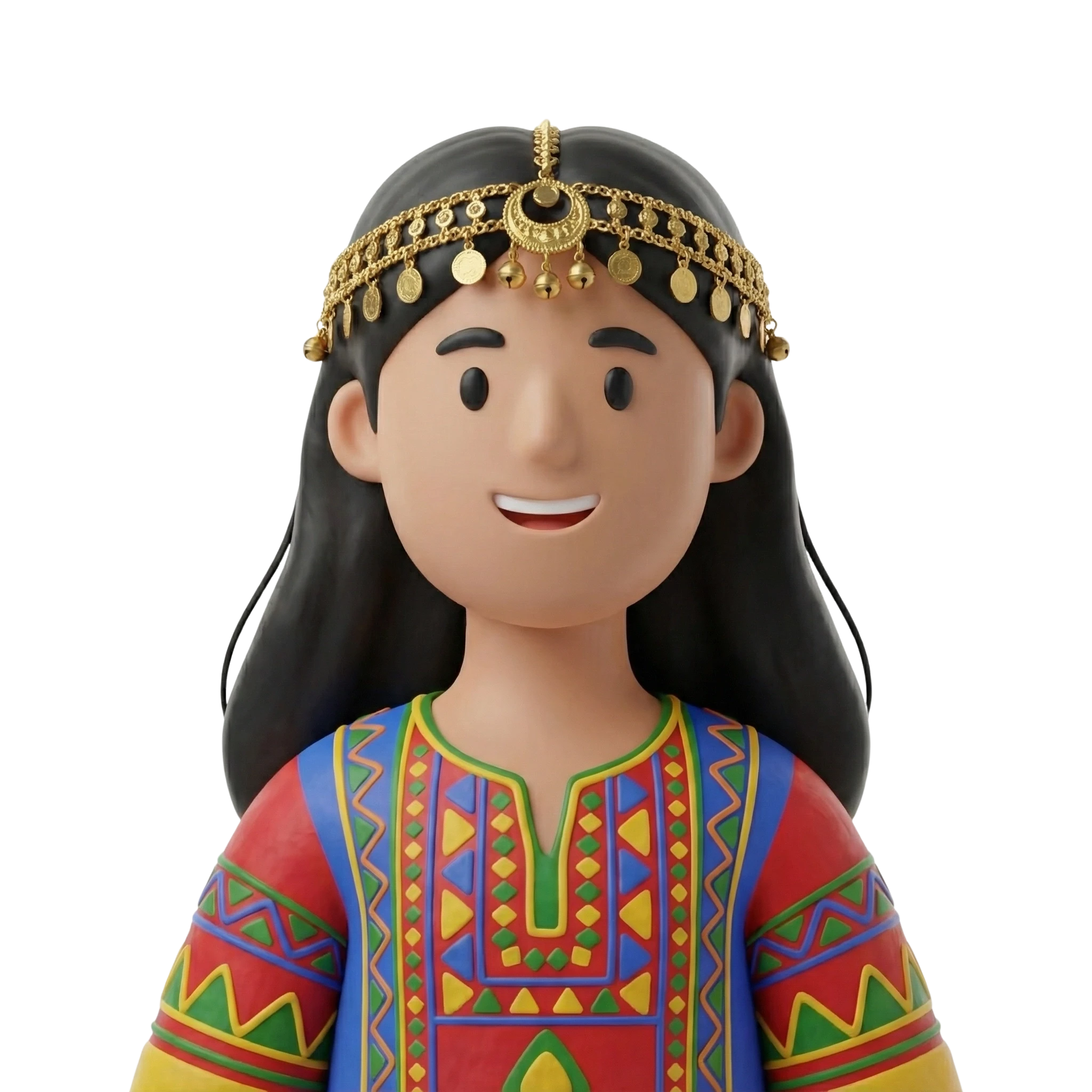 فتاة مبهجة تحتفل بالقرقيعان بالزي الخليجي التقليدي، تُجسّد التراث الثقافي الغني والروح المفرحة من خلال التطريزات الزاهية والإكسسوارات الاحتفالية.