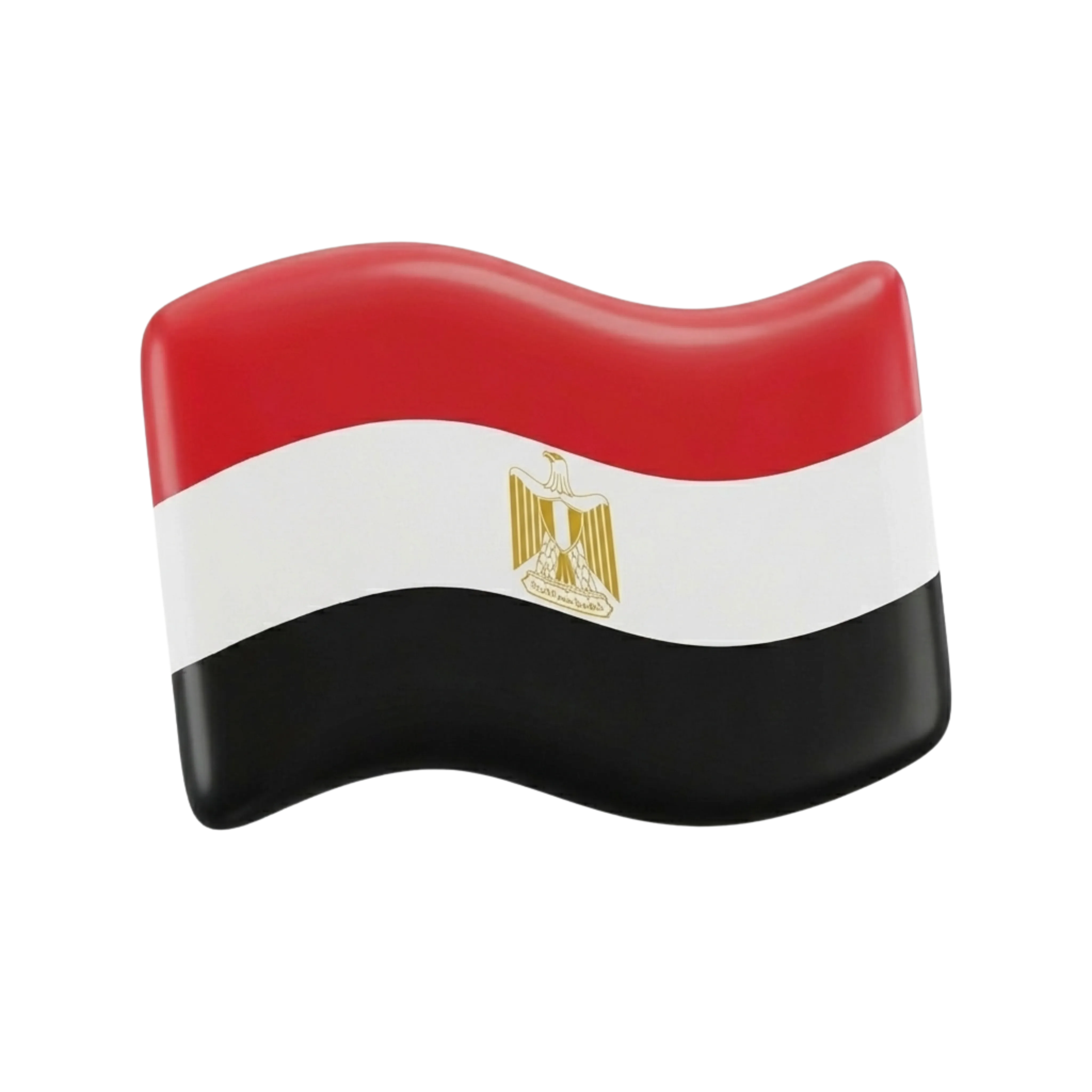 A high-resolution 3D icon of the Egyptian flag featuring a glossy finish and realistic wavy form. Designed with red, white, and black horizontal stripes and the gold Eagle of Saladin emblem at the center. Ideal for use in educational illustrations, national celebrations, UI/UX design, and digital infographics related to Egypt.