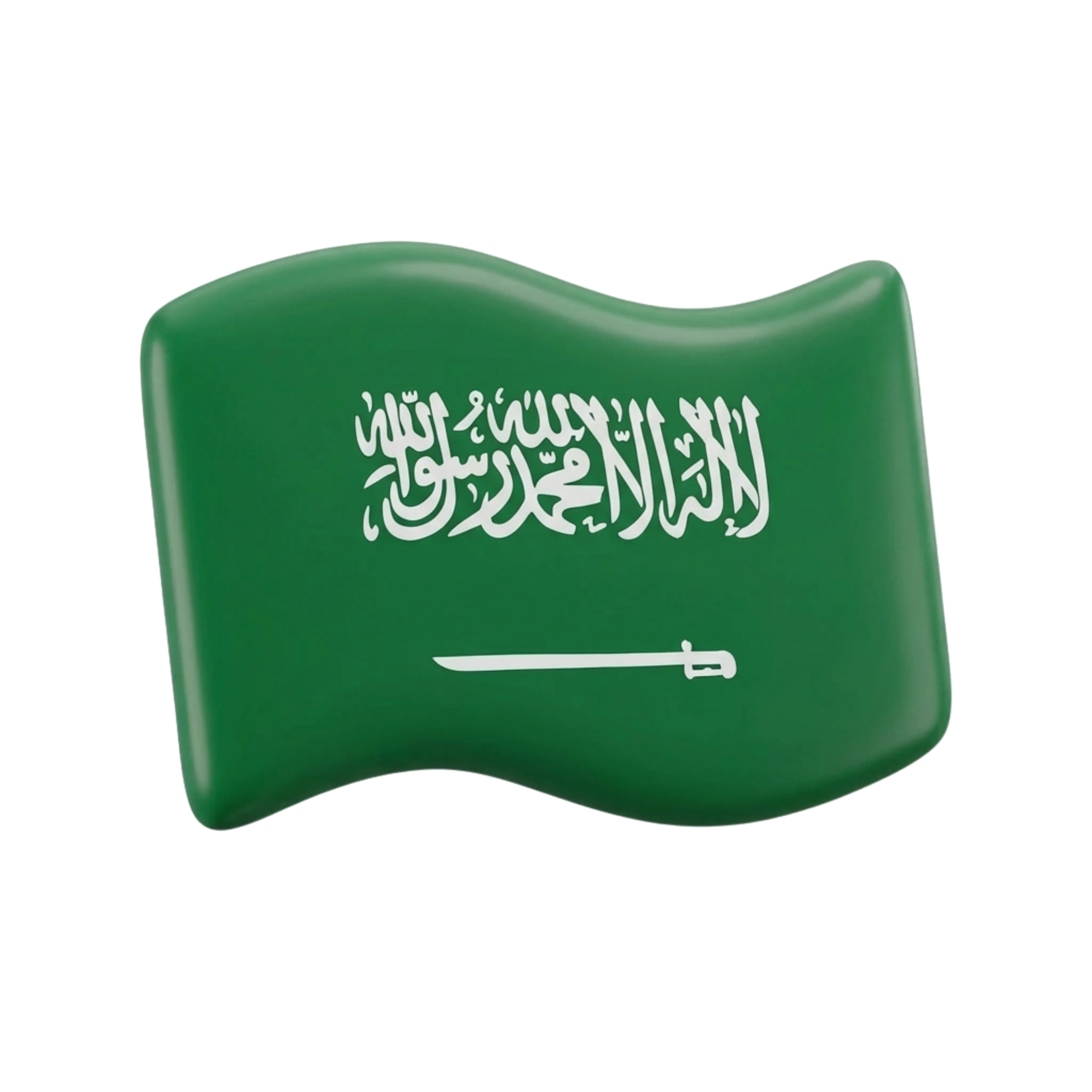 A high-quality 3D render of the Saudi Arabian national flag icon, designed in a waving form with a smooth, glossy finish. Ideal for use in patriotic graphics, national celebration designs, educational materials, or user interface applications.
