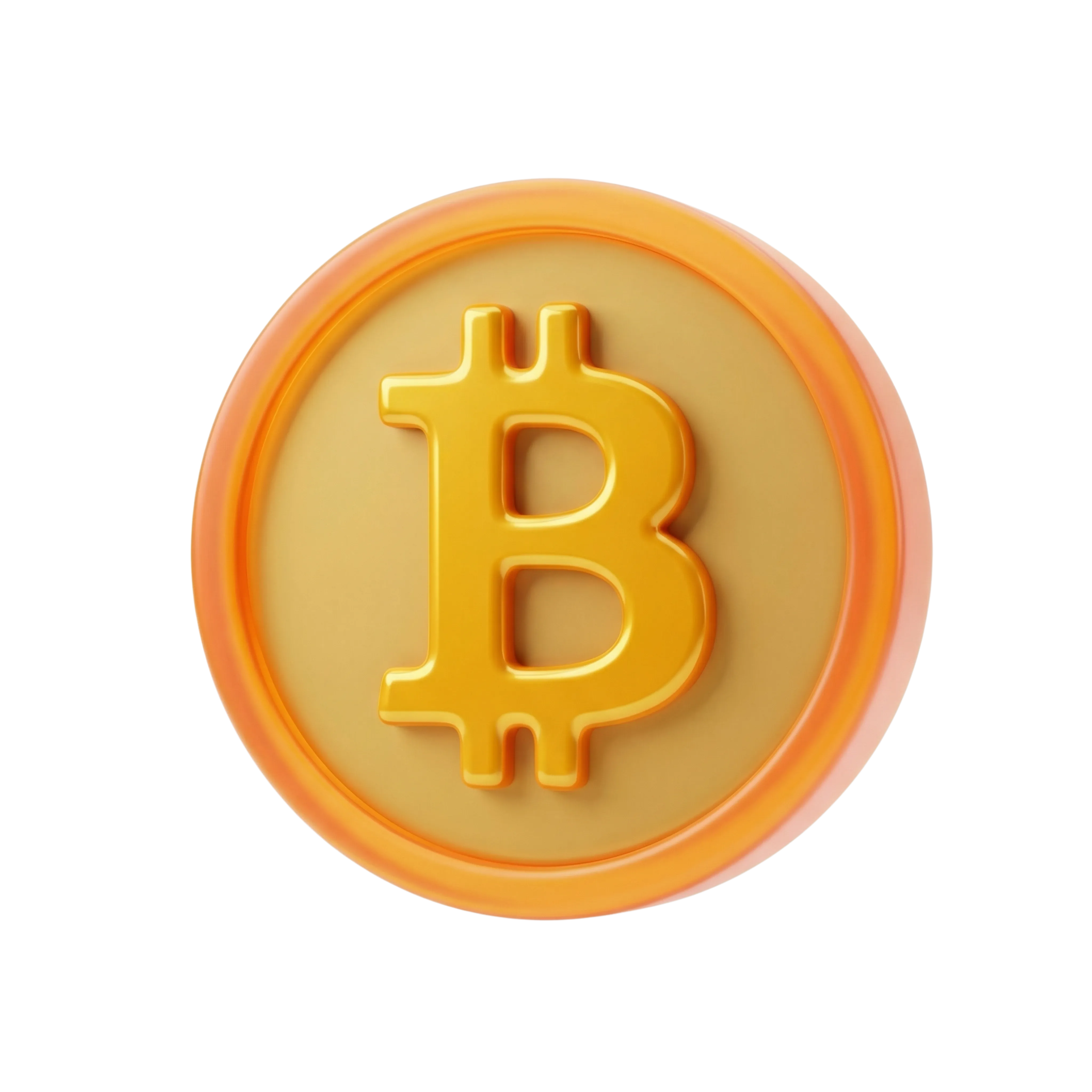 مجسم ثلاثي الأبعاد عالي الجودة لأيقونة عملة البيتكوين الرقمية، يتميز بلمسة ذهبية لامعة وقاعدة دائرية ناعمة. مثالي لتصاميم واجهات المستخدم في مجالات التقنية المالية والعملات المشفرة والعروض التقديمية الرقمية.
