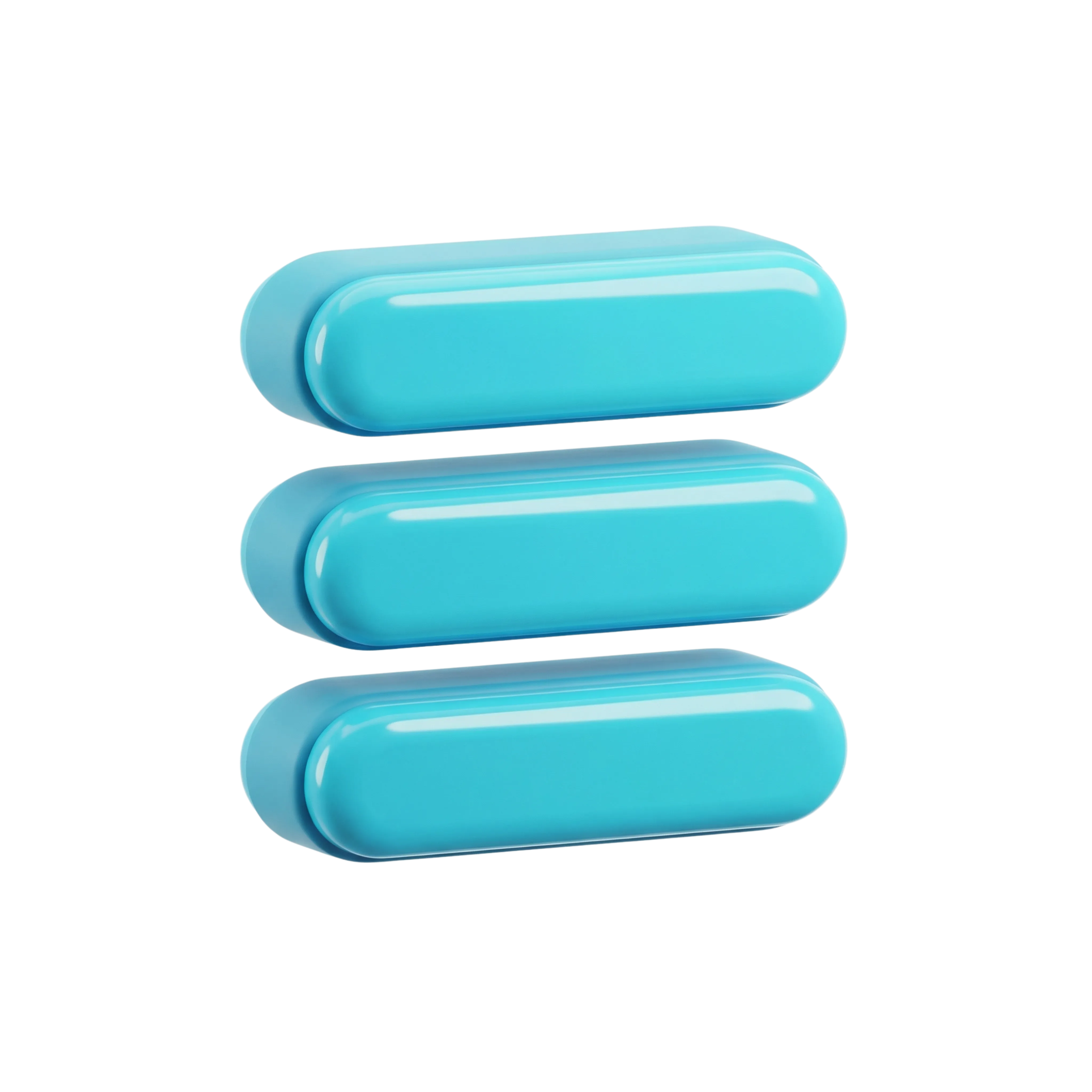 A high-quality 3D rendering of a blue menu icon composed of three horizontally aligned, rounded rectangles with a glossy plastic finish. Ideal for UI/UX design mockups, apps, and website interfaces requiring a modern and vibrant navigation symbol.