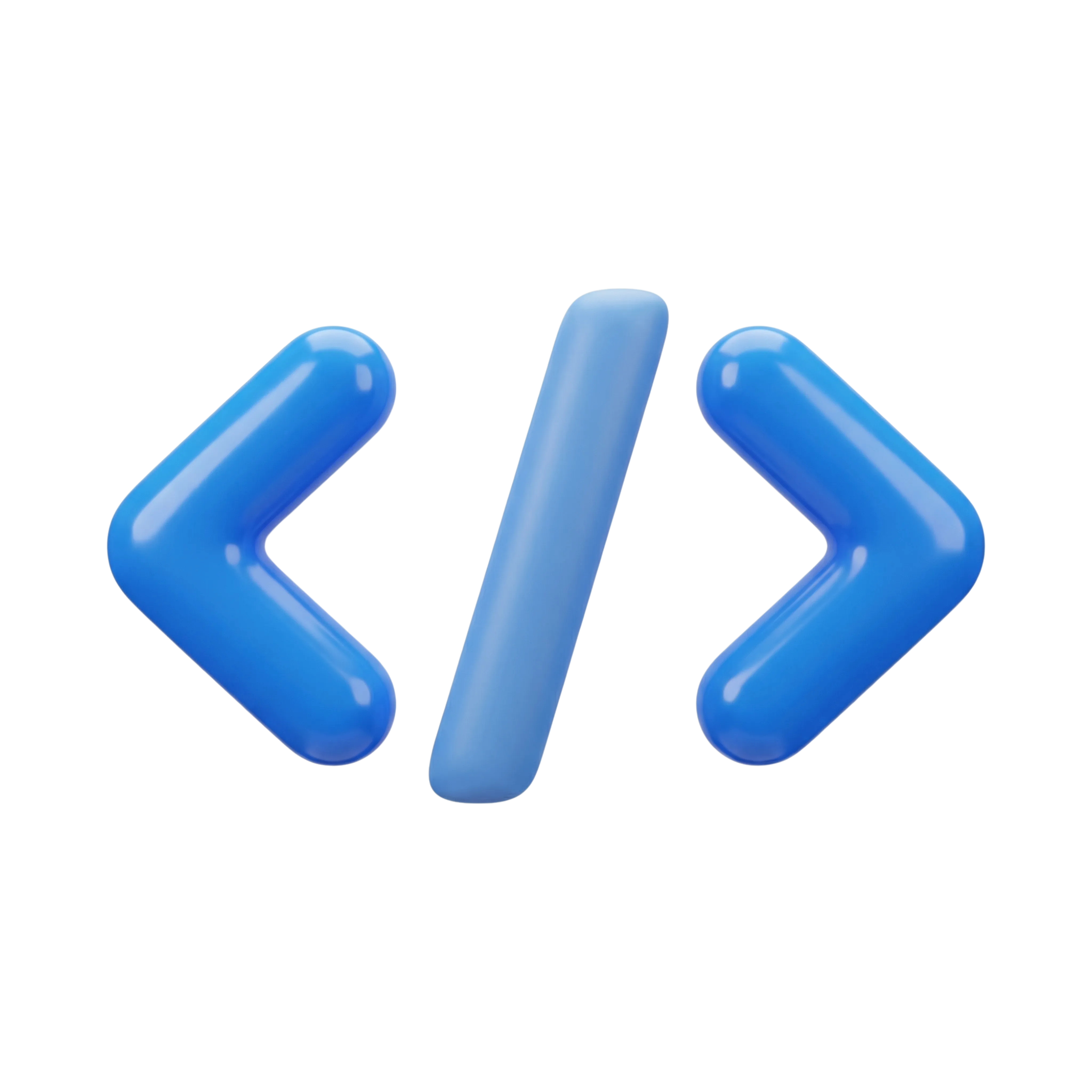 مجسم ثلاثي الأبعاد عالي الدقة لأيقونة وسم الشيفرة بتصميم حديث ومادة لامعة بلون أزرق. مثالي للاستخدام في رسومات تطوير الويب، تصاميم واجهات المستخدم، شروحات البرمجة، وعروض تقديمية خاصة بالمبرمجين.