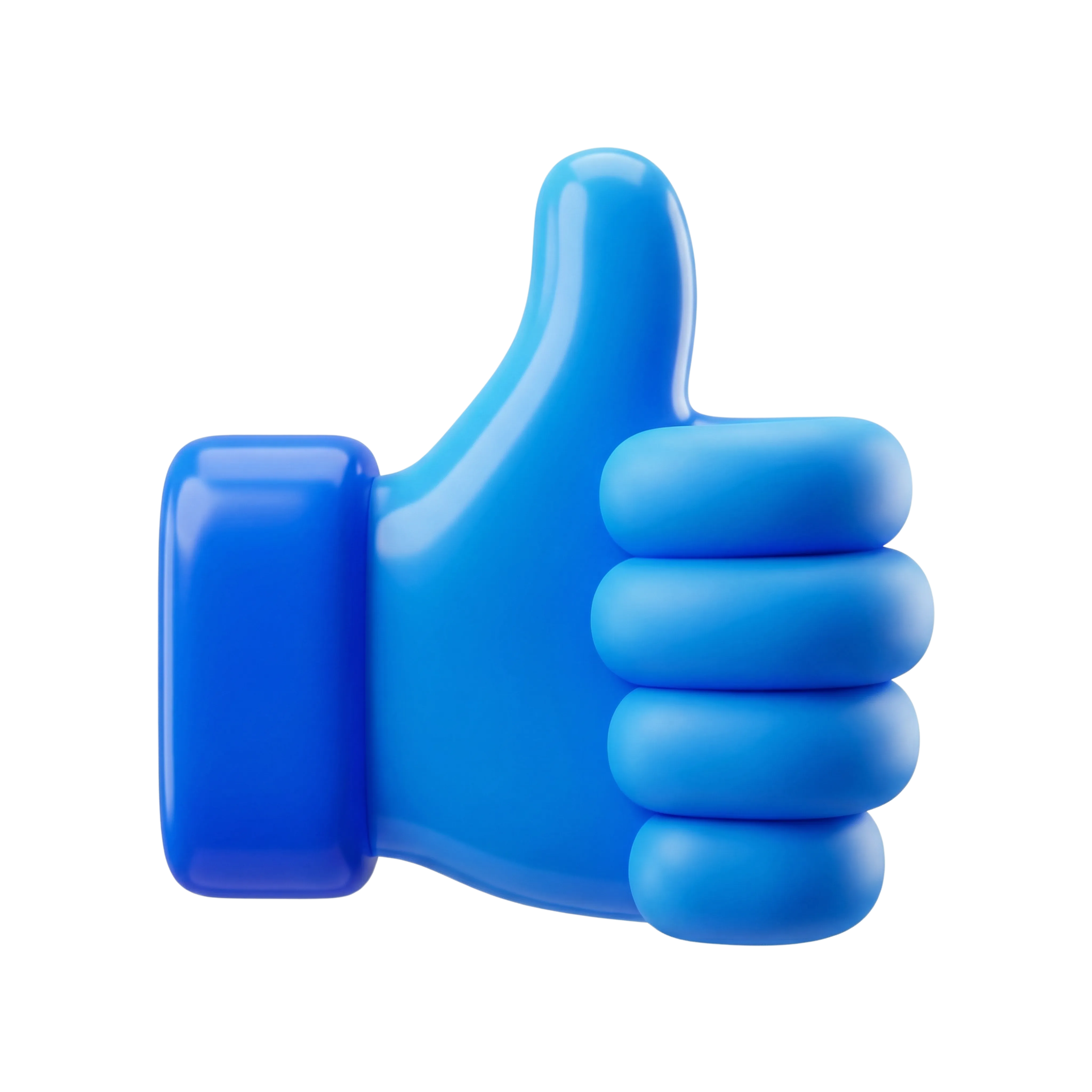 مجسم ثلاثي الأبعاد مصمم لإشارة الإعجاب بلون أزرق لامع وحواف ناعمة، مثالي لواجهات المستخدم وتطبيقات الهواتف وأنظمة التقييم والعروض التقديمية.