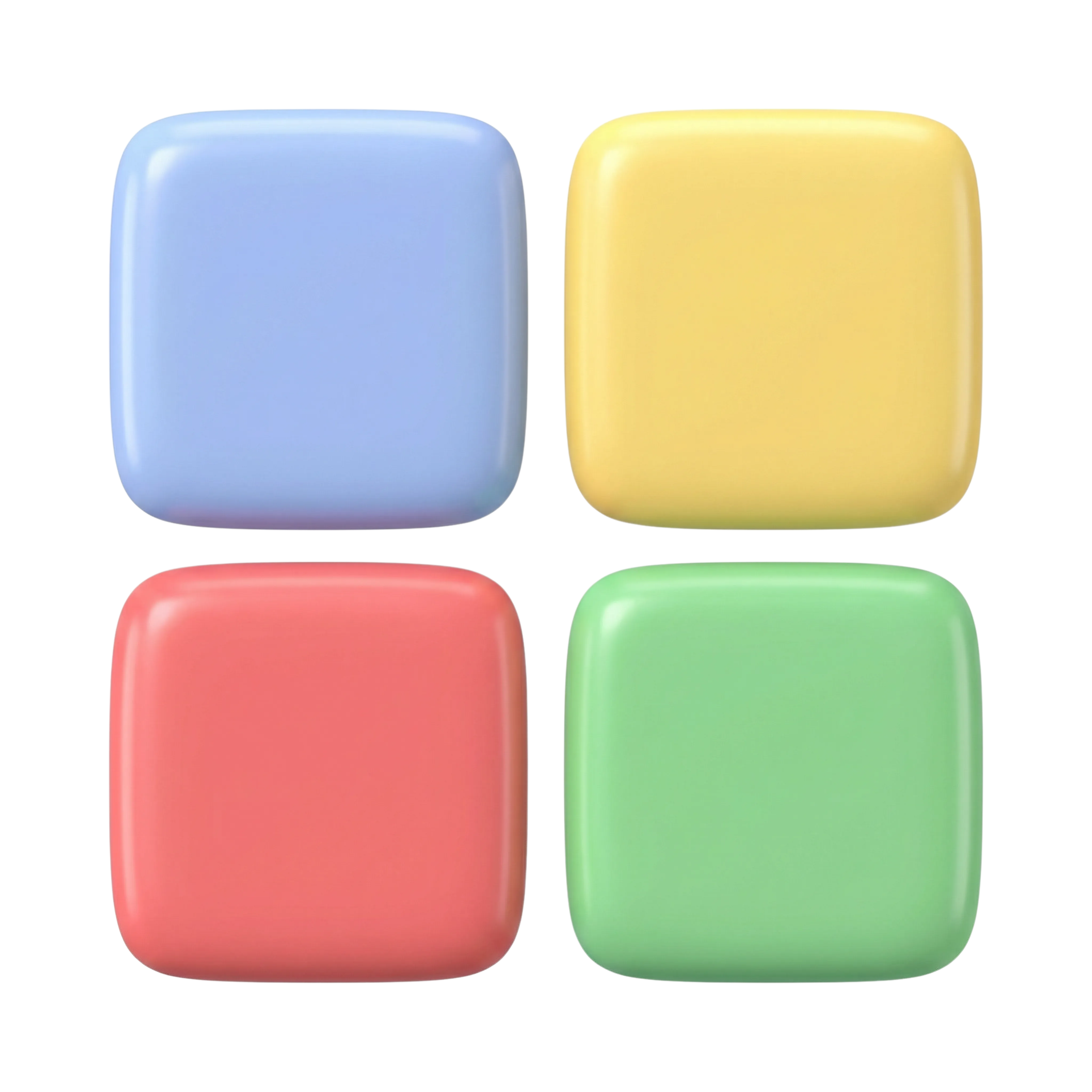 A high-resolution 3D render of a colorful dashboard grid icon composed of four glossy, rounded squares in distinct primary-like colors. Ideal for use in mobile apps, UI/UX design, dashboards, or web interfaces to represent categories or menu buttons.