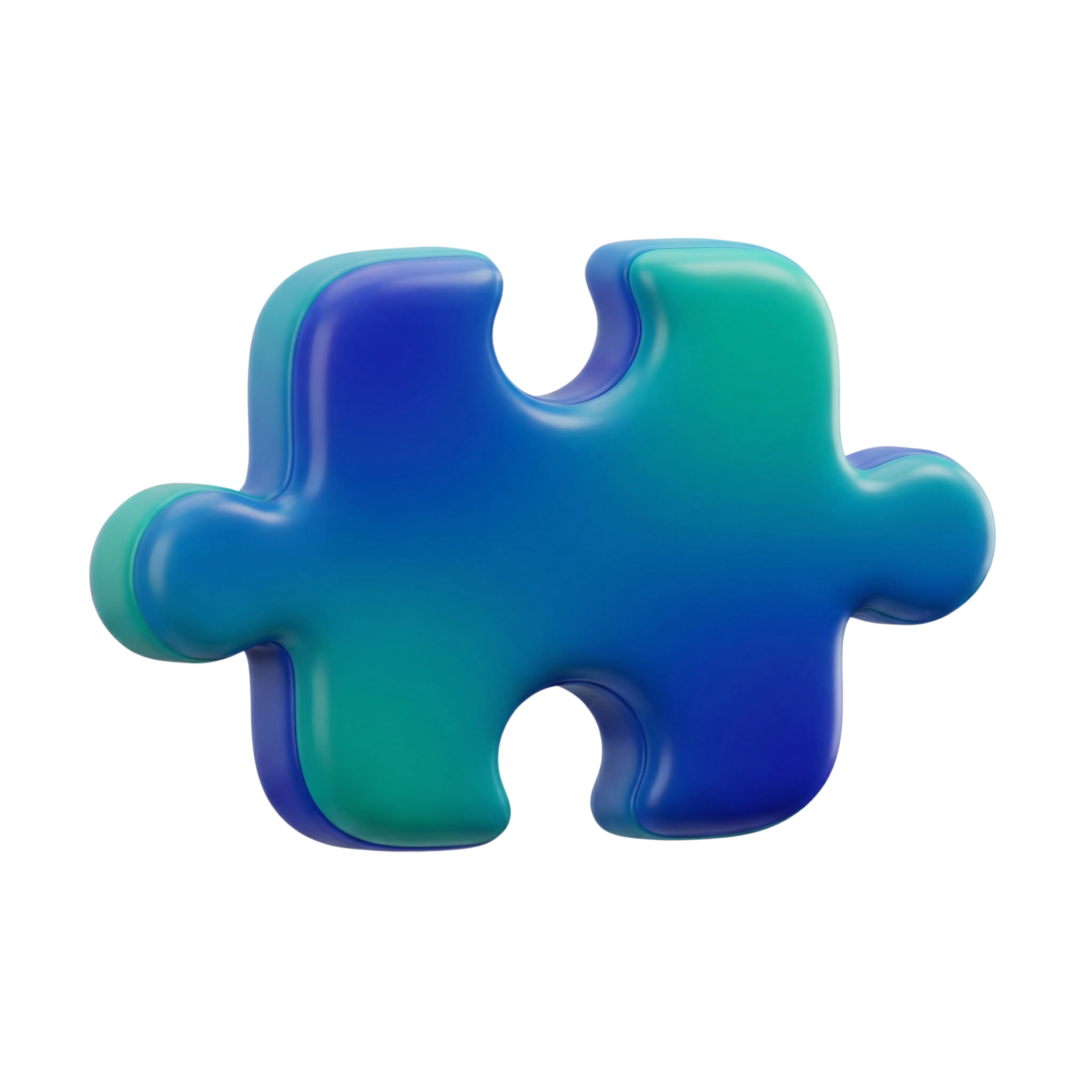 A high-quality 3D-rendered puzzle piece with a smooth, glossy surface featuring blue-green gradient tones. Ideal as a UI icon, symbol for problem-solving, collaboration, or educational content. Its soft lighting and isolated background make it suitable for digital use across websites, apps, and infographics.