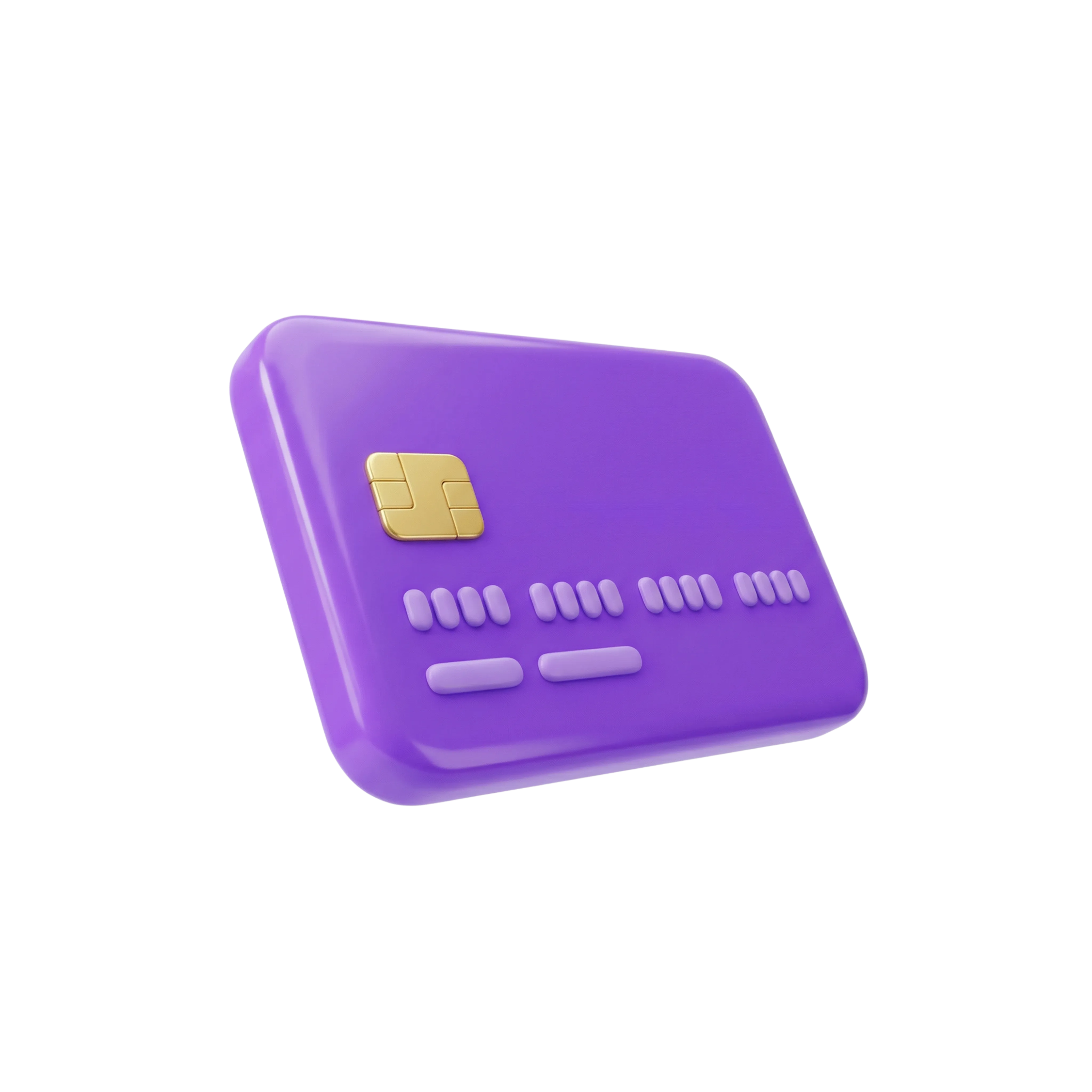 مجسم ثلاثي الأبعاد عالي الجودة لبطاقة ائتمان حديثة باللون الأرجواني اللامع مع شريحة ذهبية معدنية، مصمم بأسلوب أيقوني مبسط. مثالي لتطبيقات التمويل، تصاميم واجهات المستخدم، أو الاستخدام في الحملات التسويقية الرقمية.