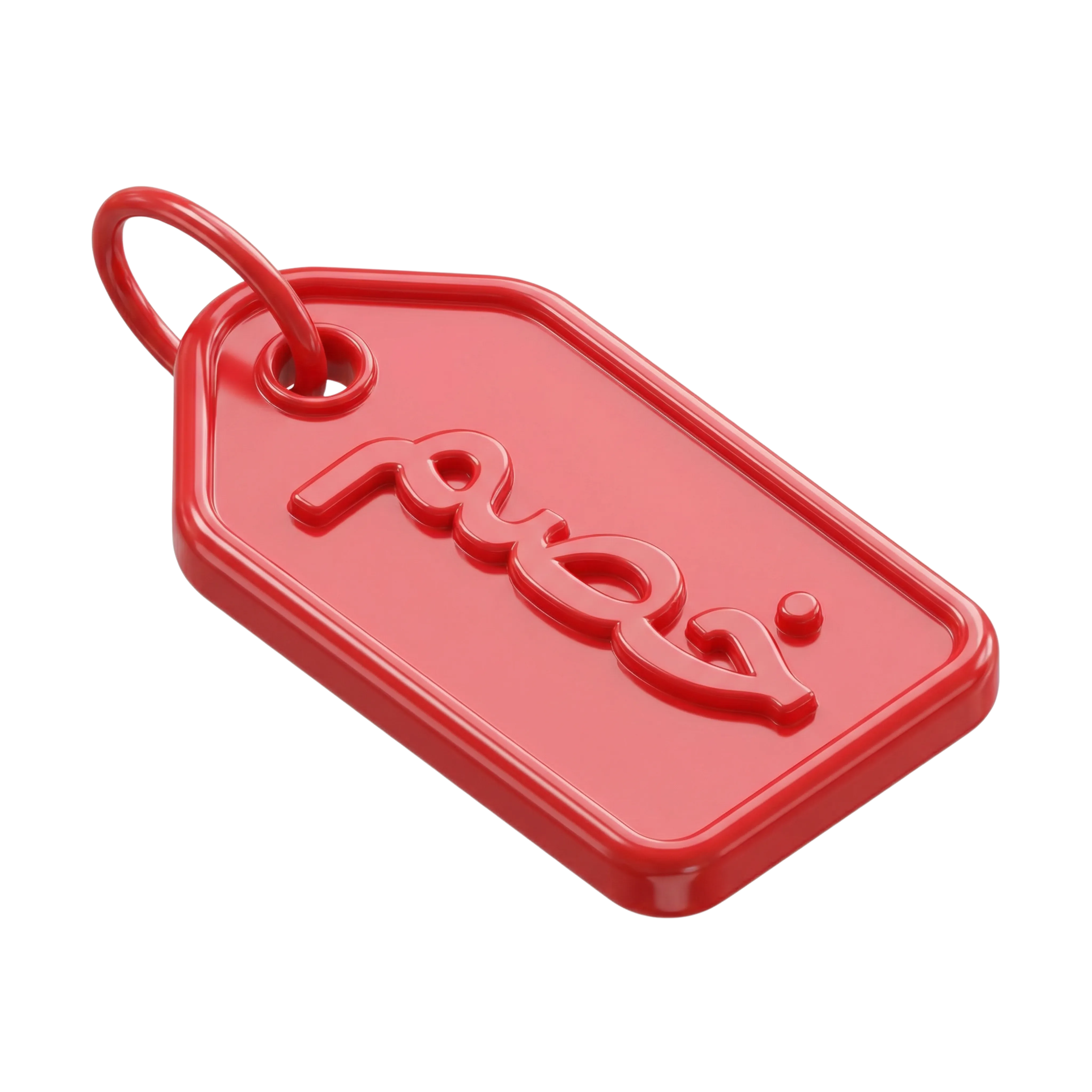 مجسم ثلاثي الأبعاد عالي الدقة لبطاقة خصم باللون الأحمر اللامع مكتوب عليها كلمة 'خصم' بالعربية بشكل بارز. مصنوعة من مادة بلاستيكية ومقدمة بخلفية شفافة، مثالية لتصميمات التجارة الإلكترونية والعروض الترويجية وحملات التجزئة في العالم العربي.