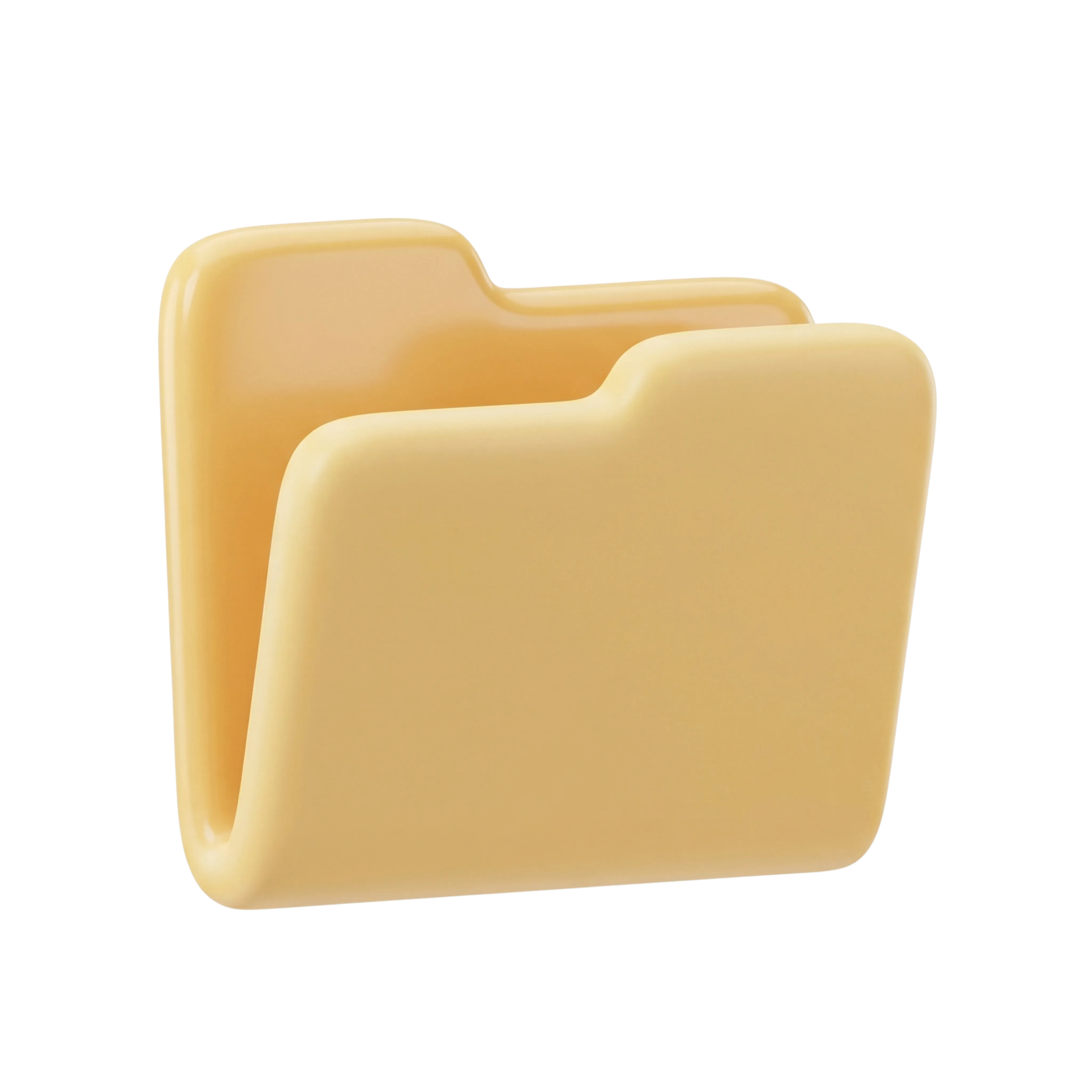 مجسم ثلاثي الأبعاد عالي الجودة لأيقونة مجلد باللون الأصفر ولمسة لامعة تشبه البلاستيك. يتميز بحواف ناعمة ومدورة وإضاءة خفيفة، مثالي لتصاميم واجهات المستخدم، التطبيقات، تطوير الويب، أو التصاميم التنظيمية.