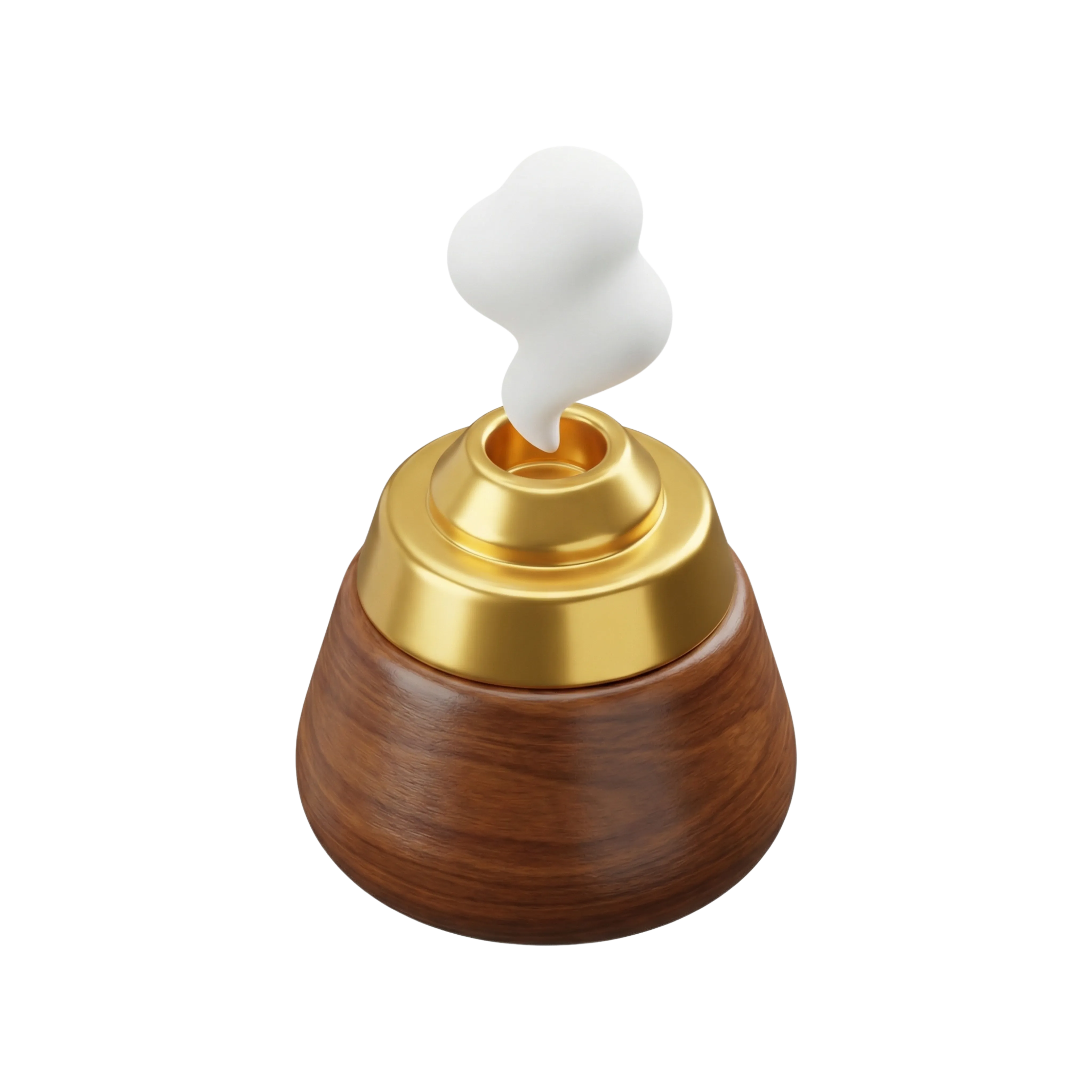 مجسم ثلاثي الأبعاد عالي الجودة لمبخرة سعودية تقليدية، بغطاء معدني ذهبي لامع وقاعدة خشبية ناعمة. يتضمن التصميم دخانًا أبيض مميزًا، مما يجعله مناسبًا للتصاميم الثقافية والمشاريع الاحتفالية والواجهات الزخرفية.