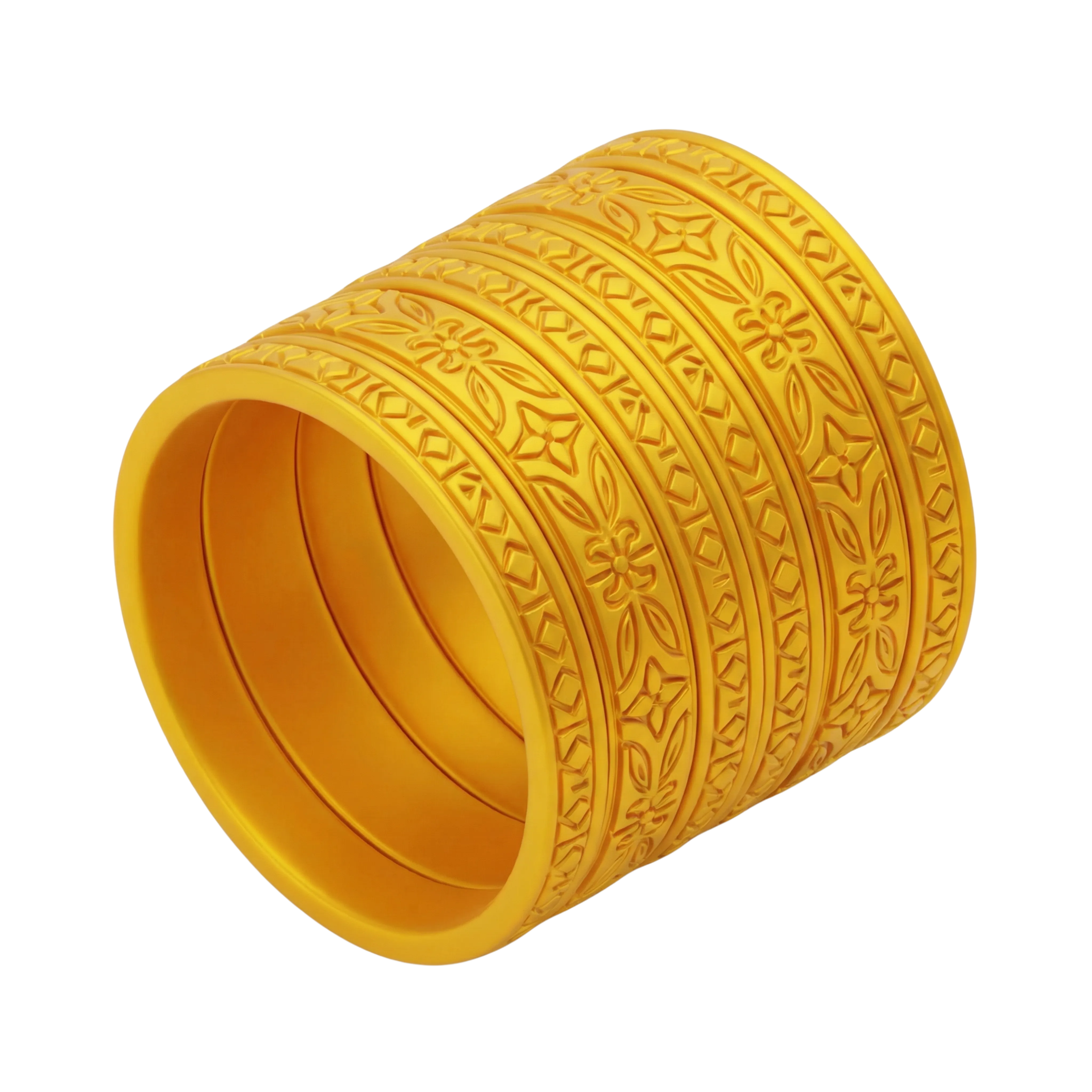 A detailed 3D model of a traditional Arabian gold bracelet featuring intricate floral and geometric engravings. The bracelet has a polished metallic surface and is ideal for cultural visualizations, jewelry presentations, or Middle Eastern themed design assets.
