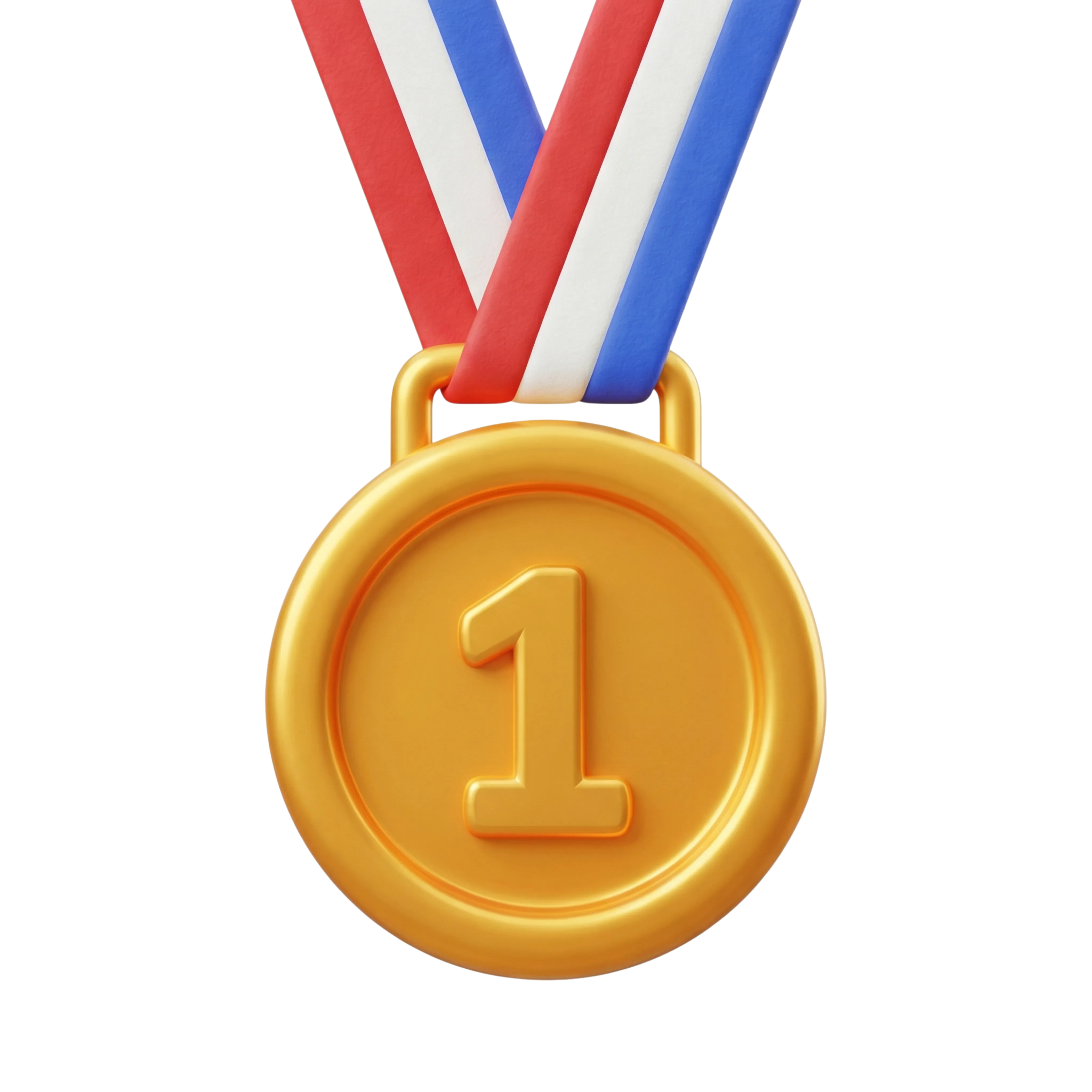 تصميم ثلاثي الأبعاد عالي الجودة لميدالية ذهبية مع رقم 1 بارز وشريط ثلاثي الألوان. الميدالية بلمعة معدنية ناعمة وتناسب التصاميم المرتبطة بالرياضة، الإنجازات أو أنظمة التقييم في التطبيقات والمحتوى التعليمي.