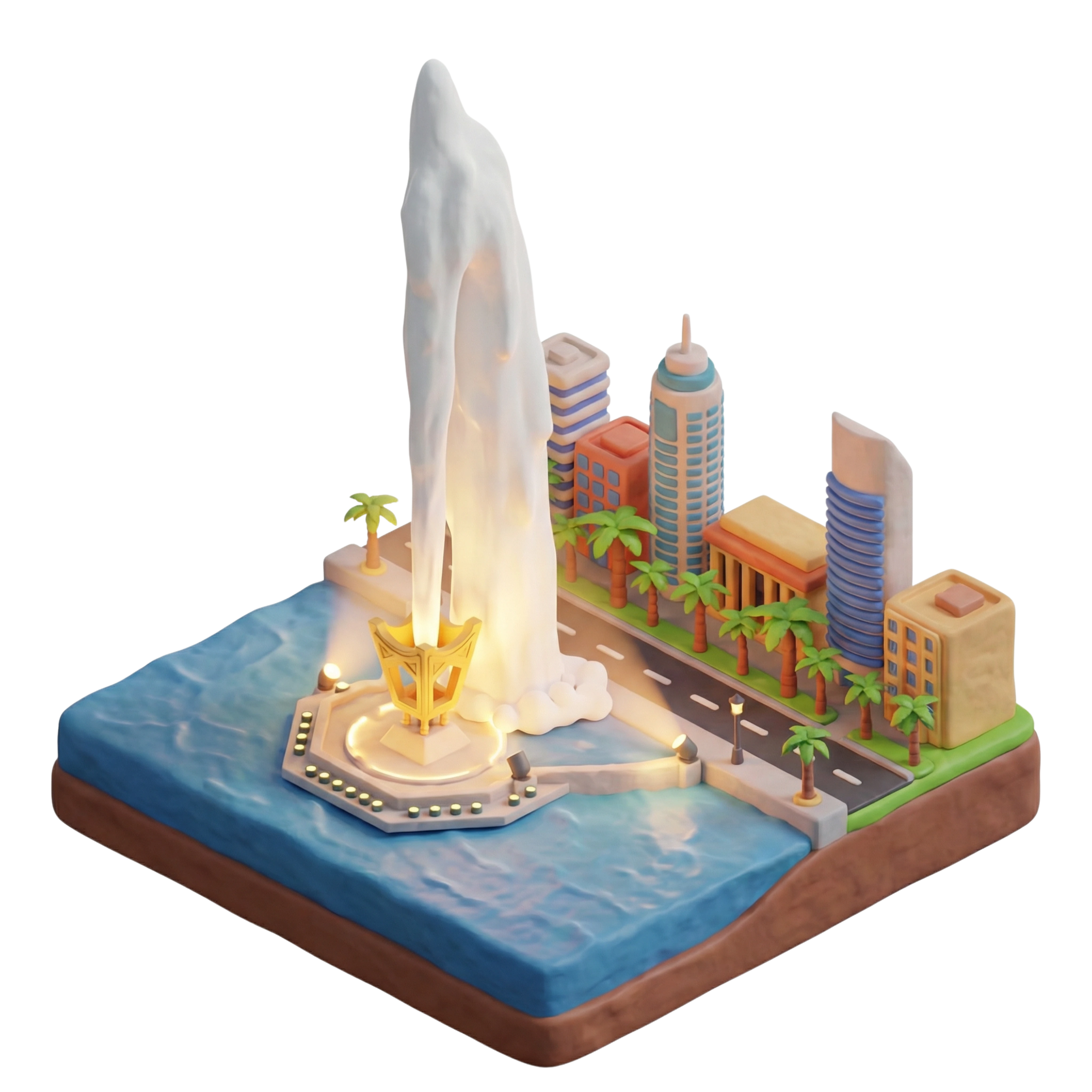 تُعد نافورة الملك فهد في جدة الأطول من نوعها في العالم، حيث يصل ارتفاعها إلى 312 مترًا، وتُطل على البحر الأحمر كواحدة من أبرز معالم المدينة. منذ إنشائها عام 1985، تجسد النافورة تقدم المملكة العربية السعودية والرمزية الهامة للماء في بيئة صحراوية. تتألق ليلاً بأضوائها الساحرة، لتشكل لوحة بانورامية حضارية تجمع بين الحداثة والعظمة.