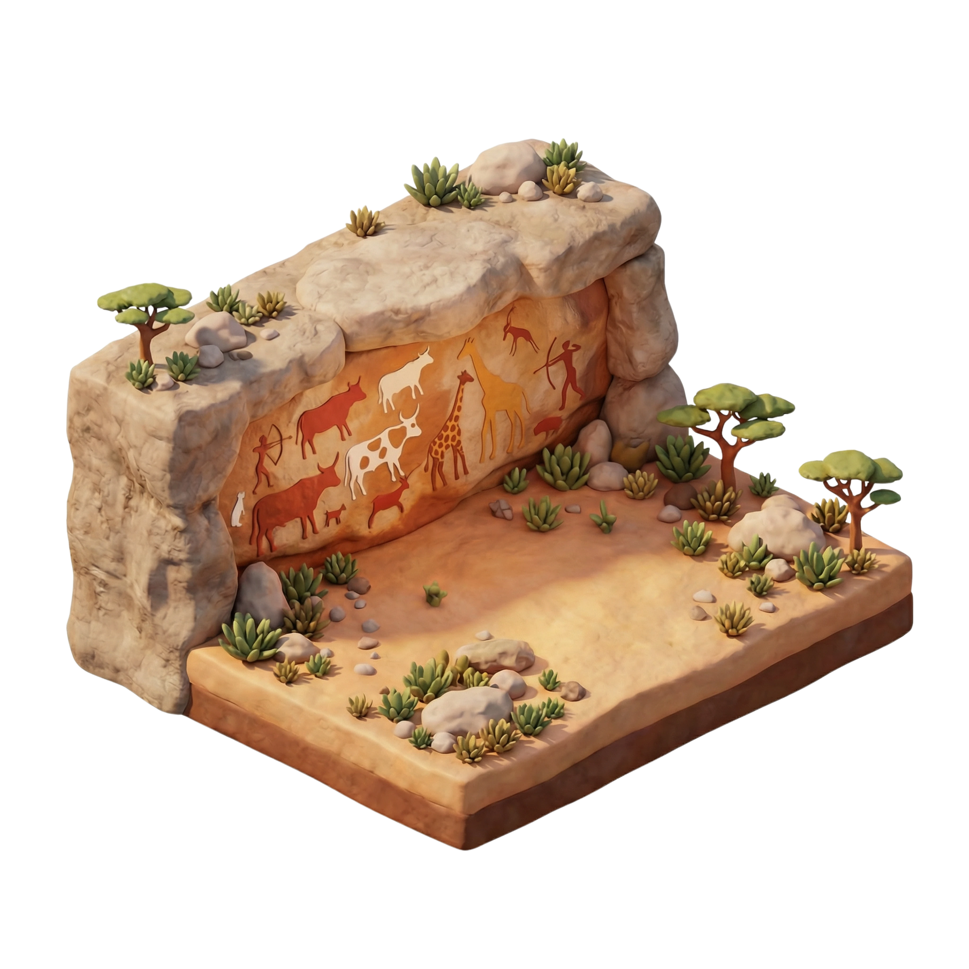 تُعد رسومات كهوف لاس جيل من أقدم وأفضل الأمثلة المحفوظة لفن الصخور النيوليتي في أفريقيا. تقع بالقرب من هرجيسا في أرض الصومال، وتعرض هذه الرسومات الملونة لحيوانات مثل الأبقار والزرافات وأشكال بشرية طقسية، وتعود لأكثر من 5000 عام. ساعدت الملاجئ الطبيعية في الصخور على حفظ التفاصيل الغنية باللونين الأحمر والأبيض، مما يعكس رمزية حضارية وثقافة رعوية قديمة.