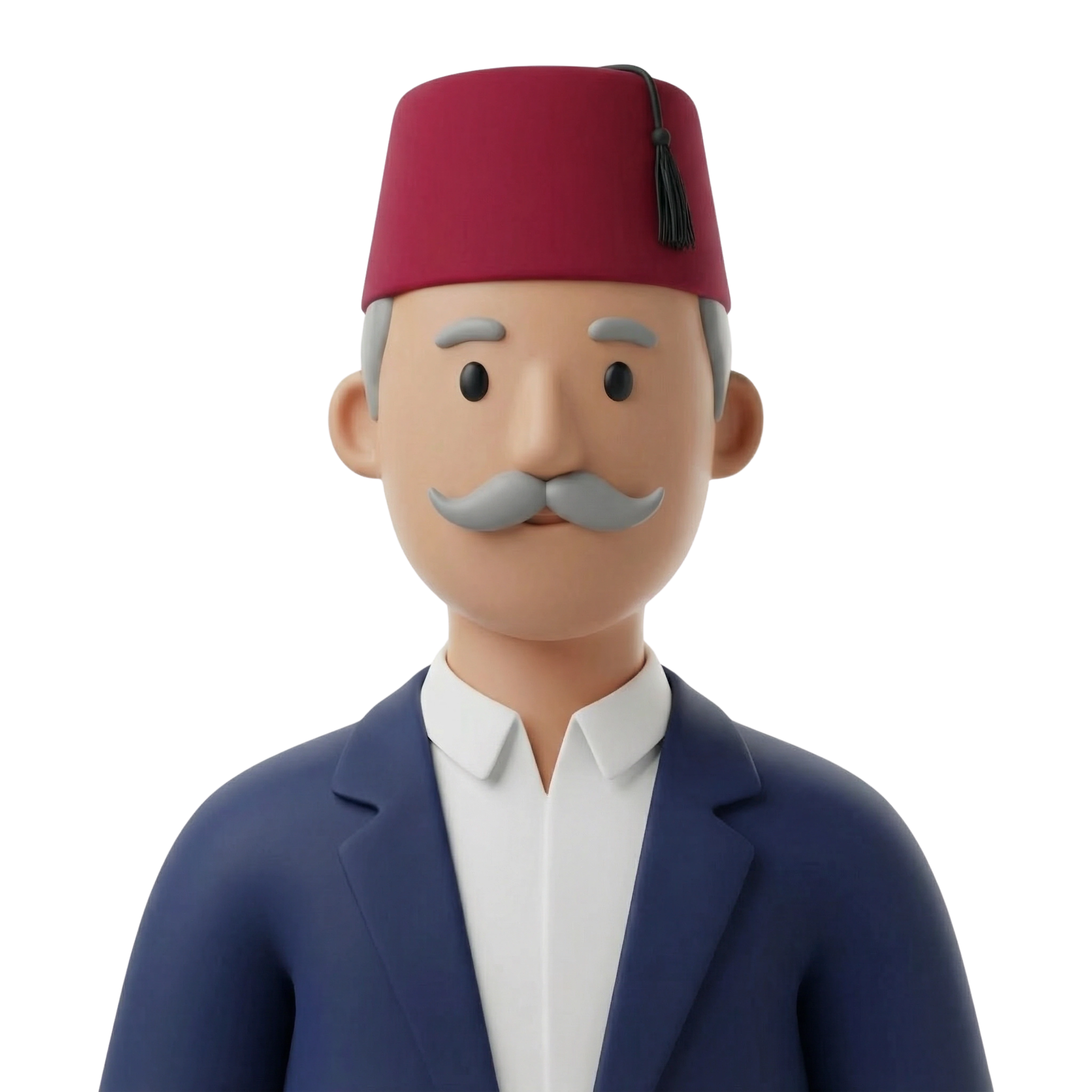 شخصية مختار محترمة ترتدي الطرابيش الحمراء والسترة الرسمية، تجسد الحكمة والأصالة في المجتمع الشامي.