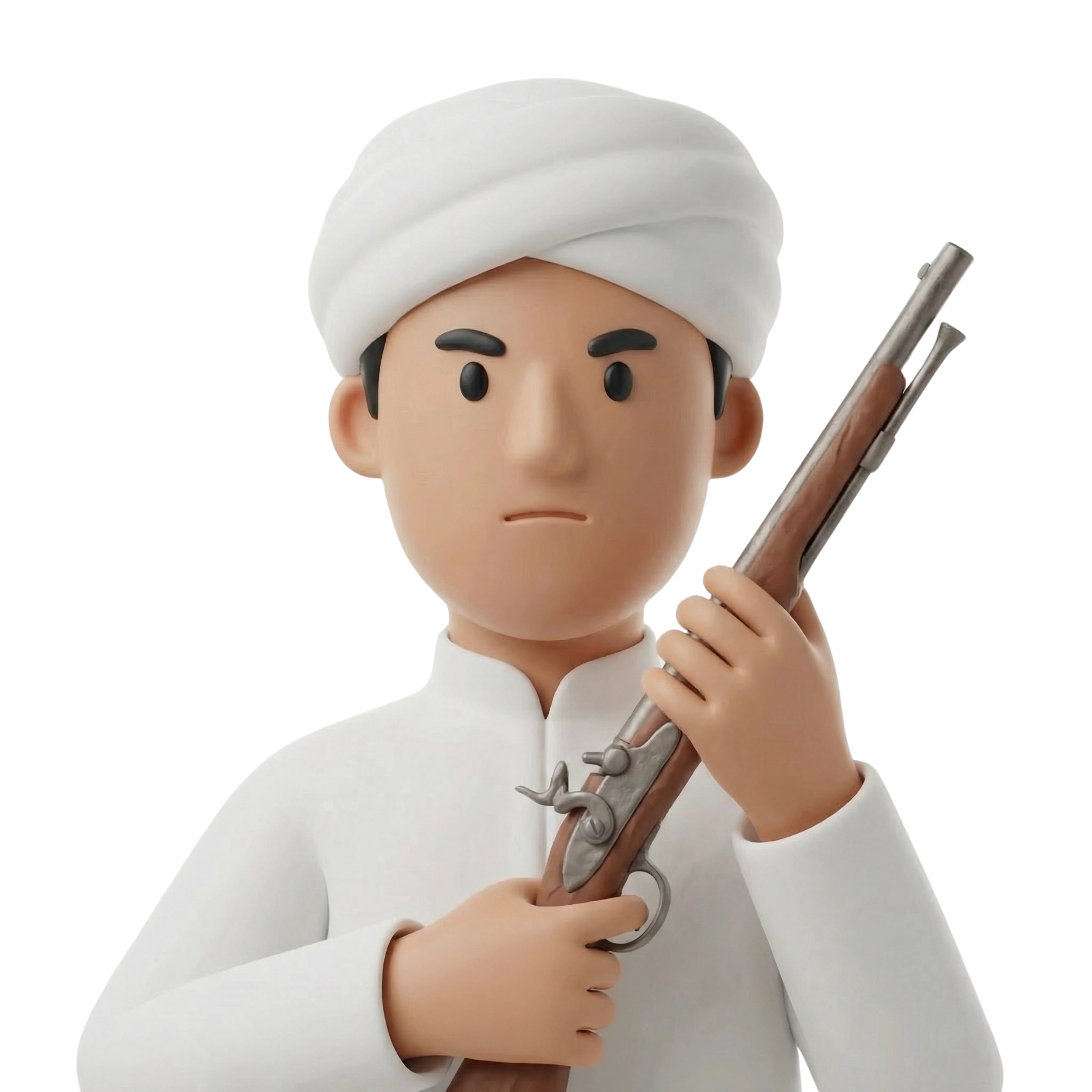 فارس تبوريدة يقف بفخر حاملاً بندقيته التقليدية، مجسداً الشجاعة والإرث الثقافي للفروسية المغربية الشعبية.