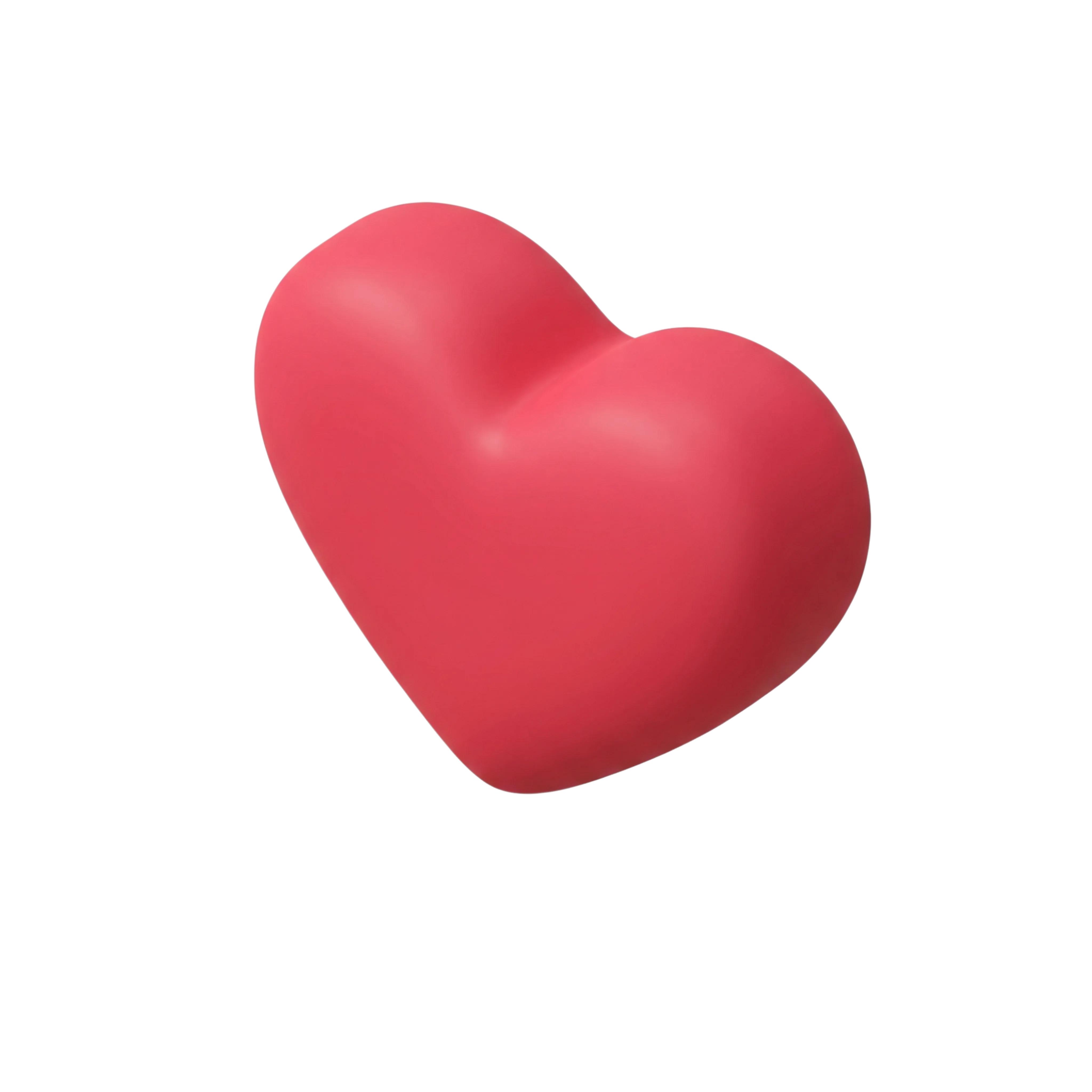 مجسم ثلاثي الأبعاد عالي الجودة لأيقونة قلب باللون الأحمر غير اللامع، ذو حواف ناعمة وإنارة خفيفة. مثالي لتصاميم المواقع، والتطبيقات، والبطاقات الرقمية، والعروض الترويجية الخاصة بيوم الحب أو عناصر واجهة المستخدم.
