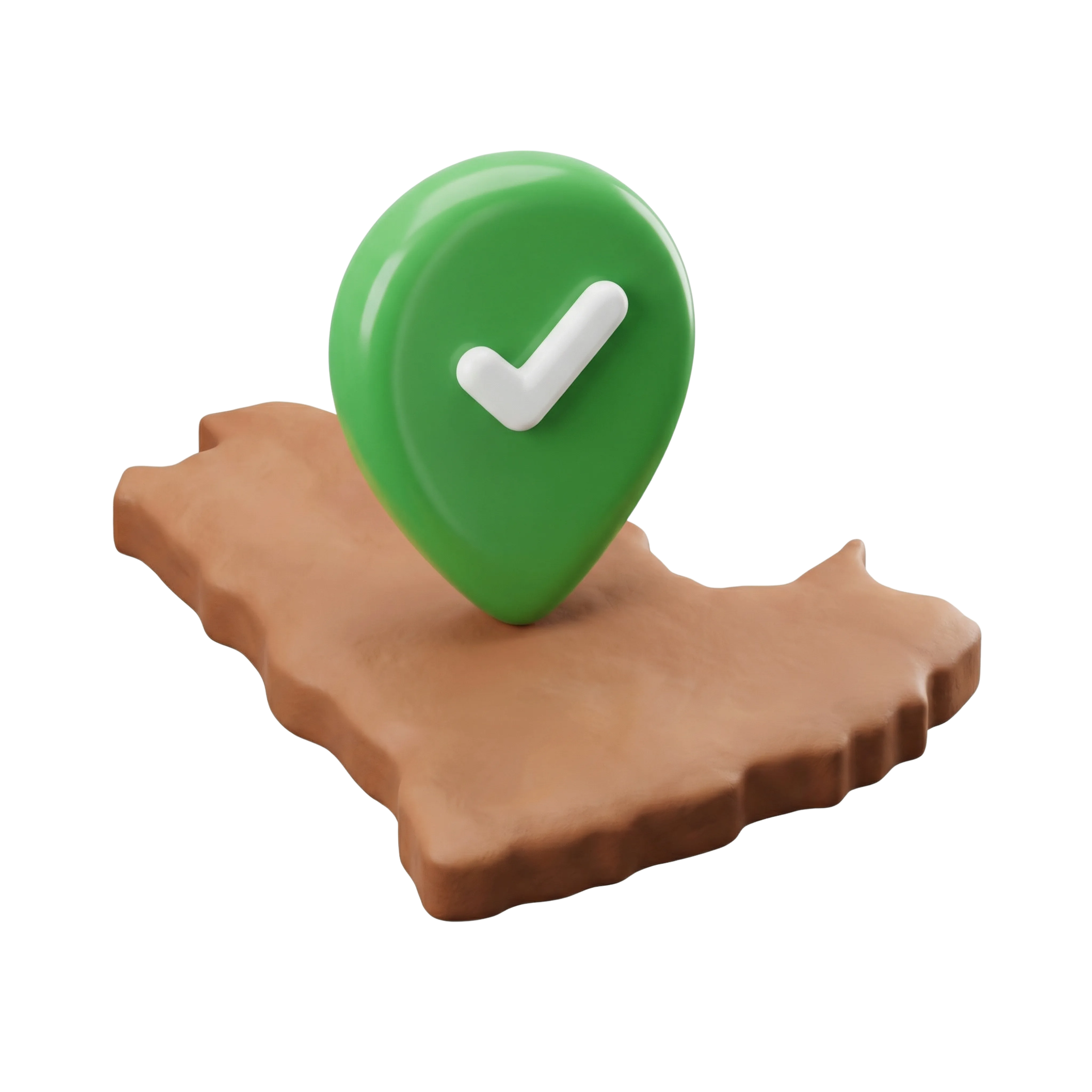 A simplified 3D render of the MENA region as a clay-textured brown base, crowned by a glossy green location pin topped with a white check mark—clean, tactile, and instantly recognizable. Perfect for app icons, UI kits, social posts, and heritage or tourism campaigns.
