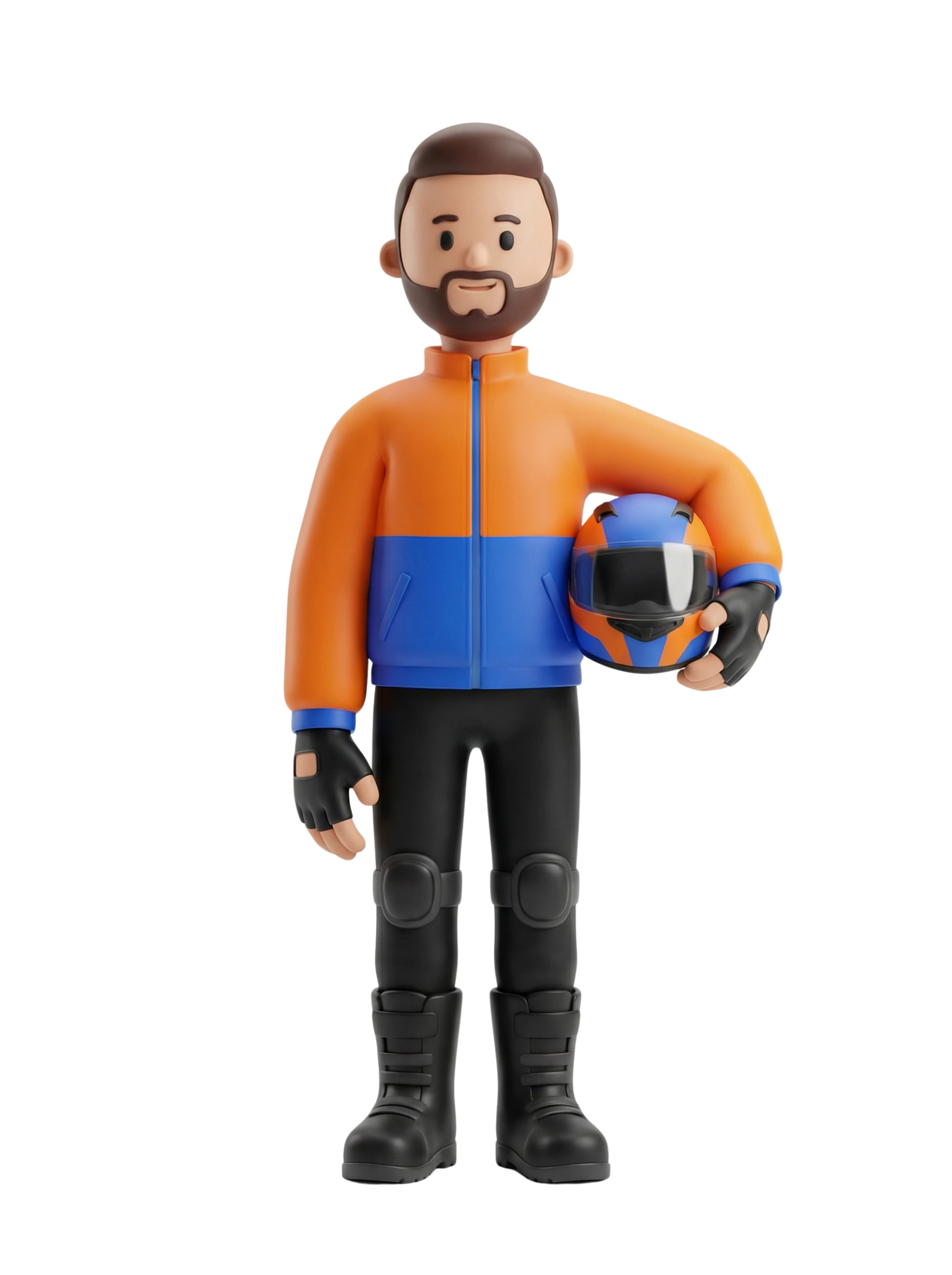 سائق توصيل محترف يقف بثقة مرتديًا زي الحماية القياسي، يجسد الكفاءة والتنقل الحضري العصري في قطاع الخدمات اللوجستية.