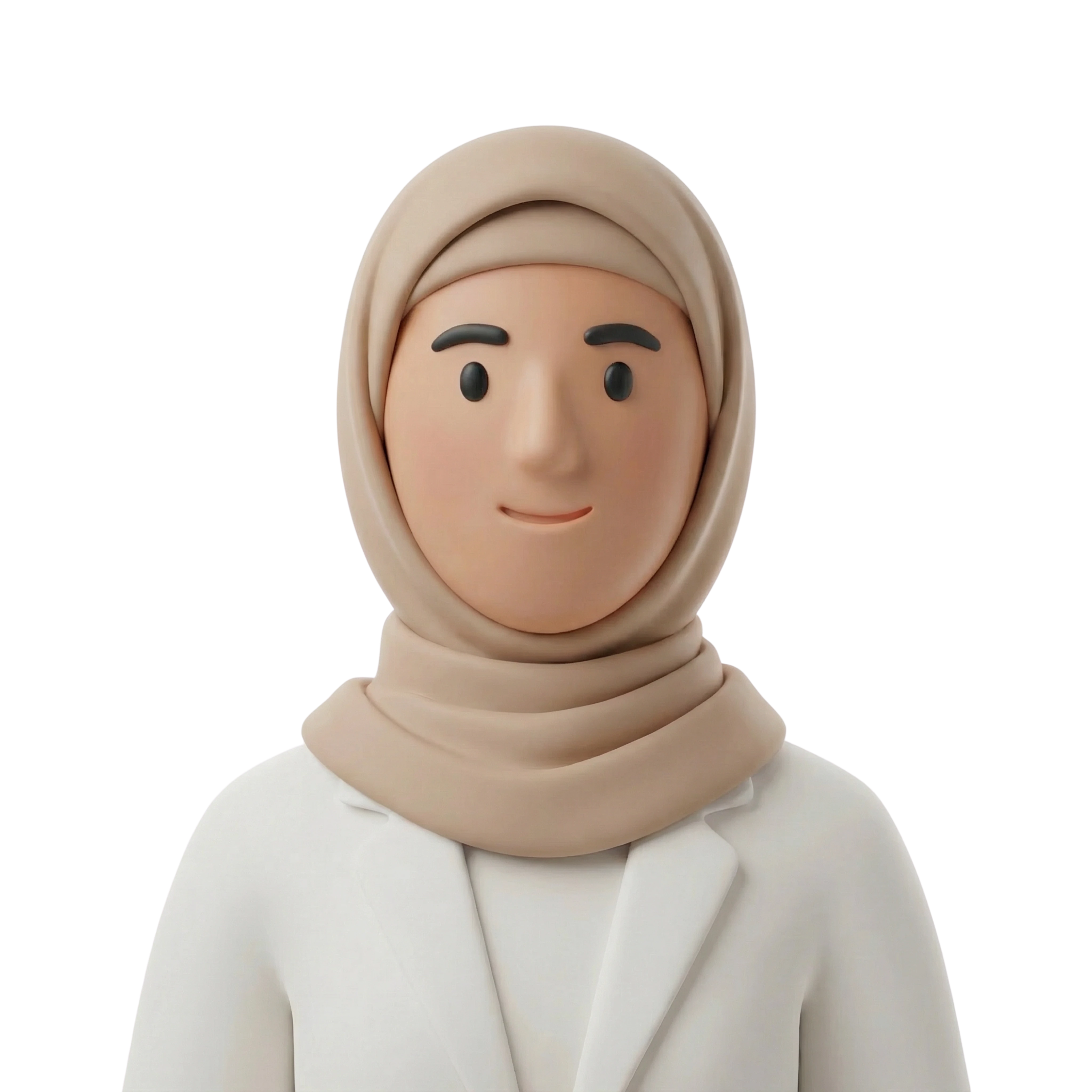 امرأة محترفة ترتدي حجابًا بيجًا وزيًا عصريًا رسميًا، تعكس الثقة والحضور المؤثر في بيئة الأعمال العالمية.
