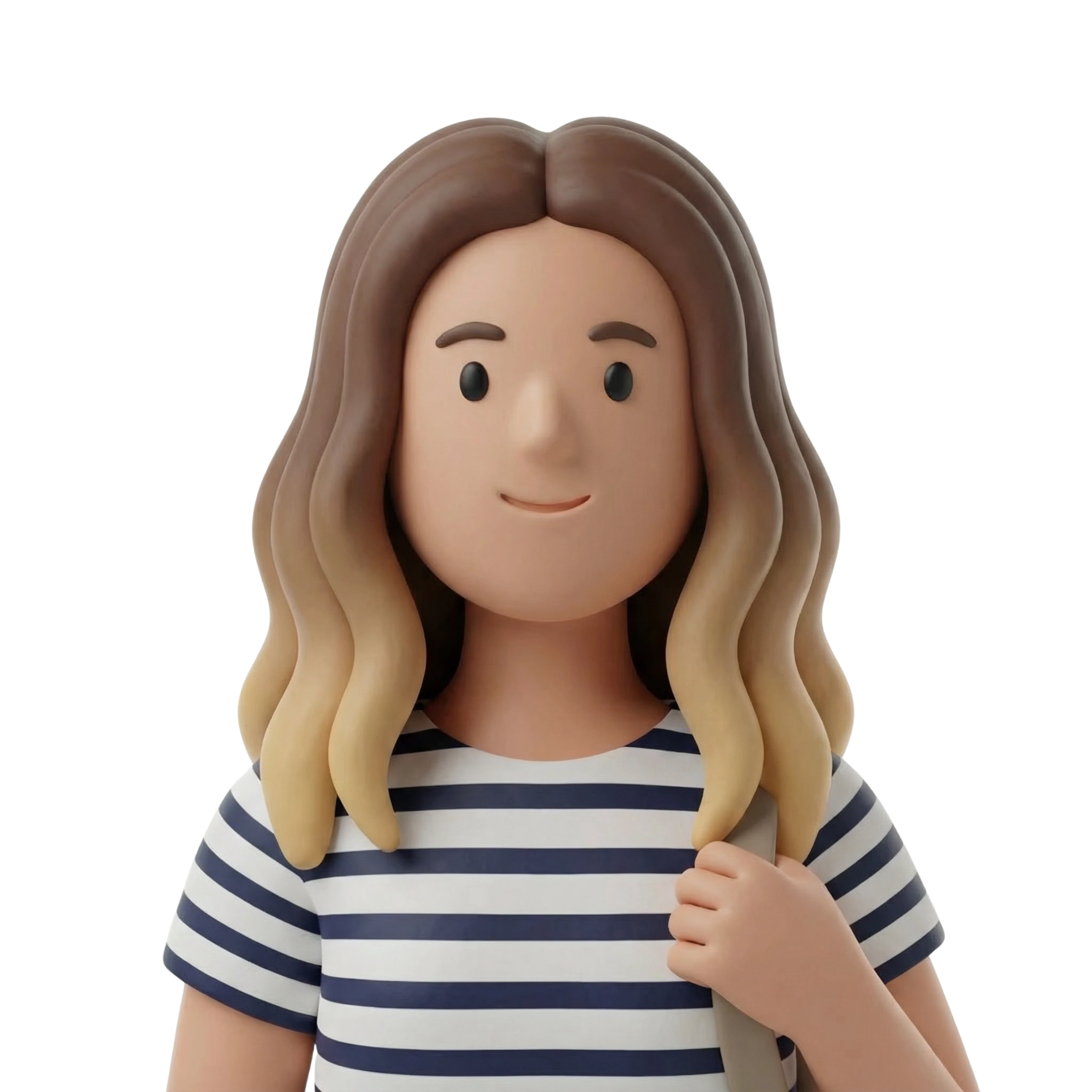 طالبة جامعية مرحة تستعد ليوم دراسي، تُظهر نمط الأزياء الشبابي العالمي من خلال قميص مخطط وحقيبة خفيفة على الكتف.