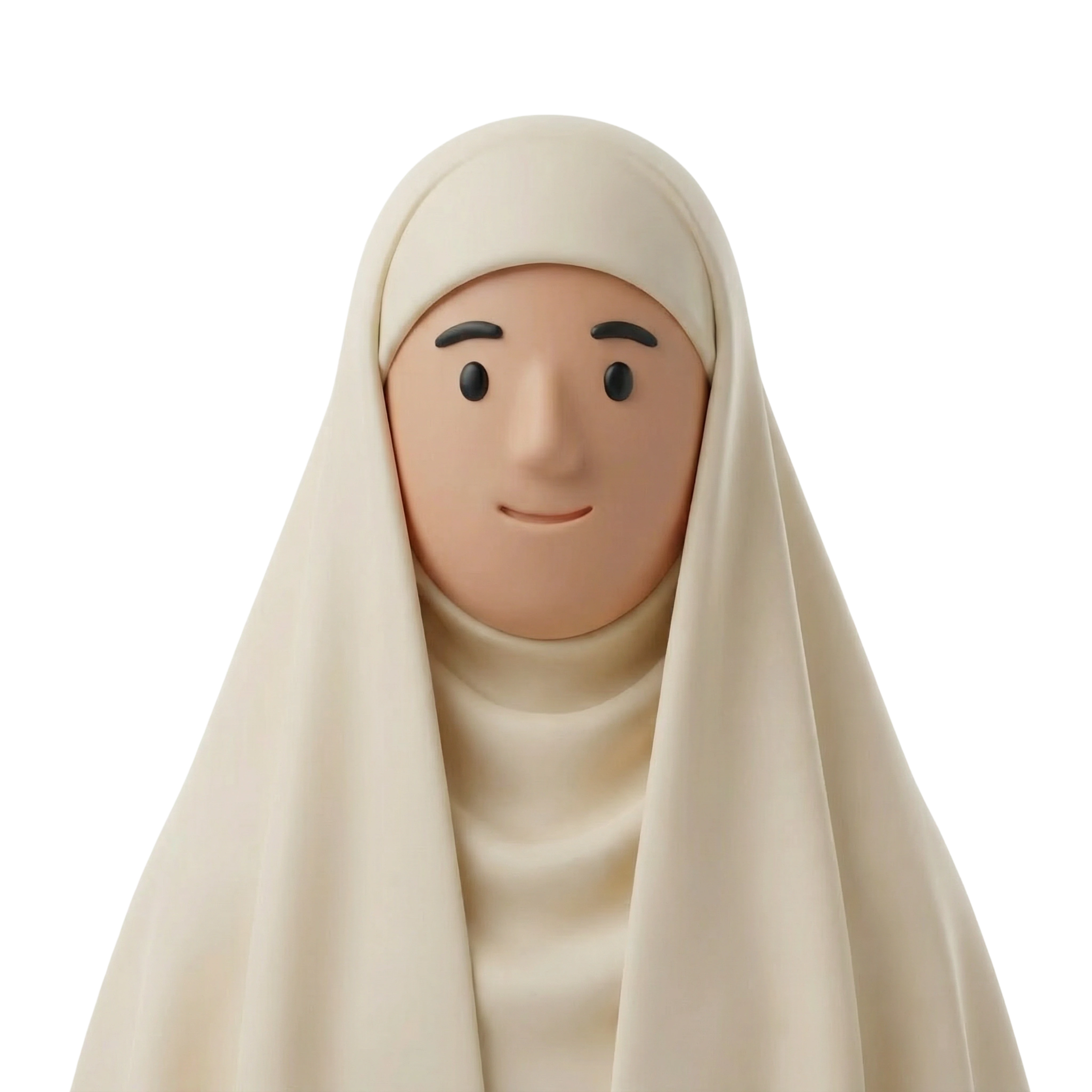 A modest woman character wearing a traditional khimar, embodying values of faith, cultural identity, and simplicity through a stylized and contemporary 3D design.