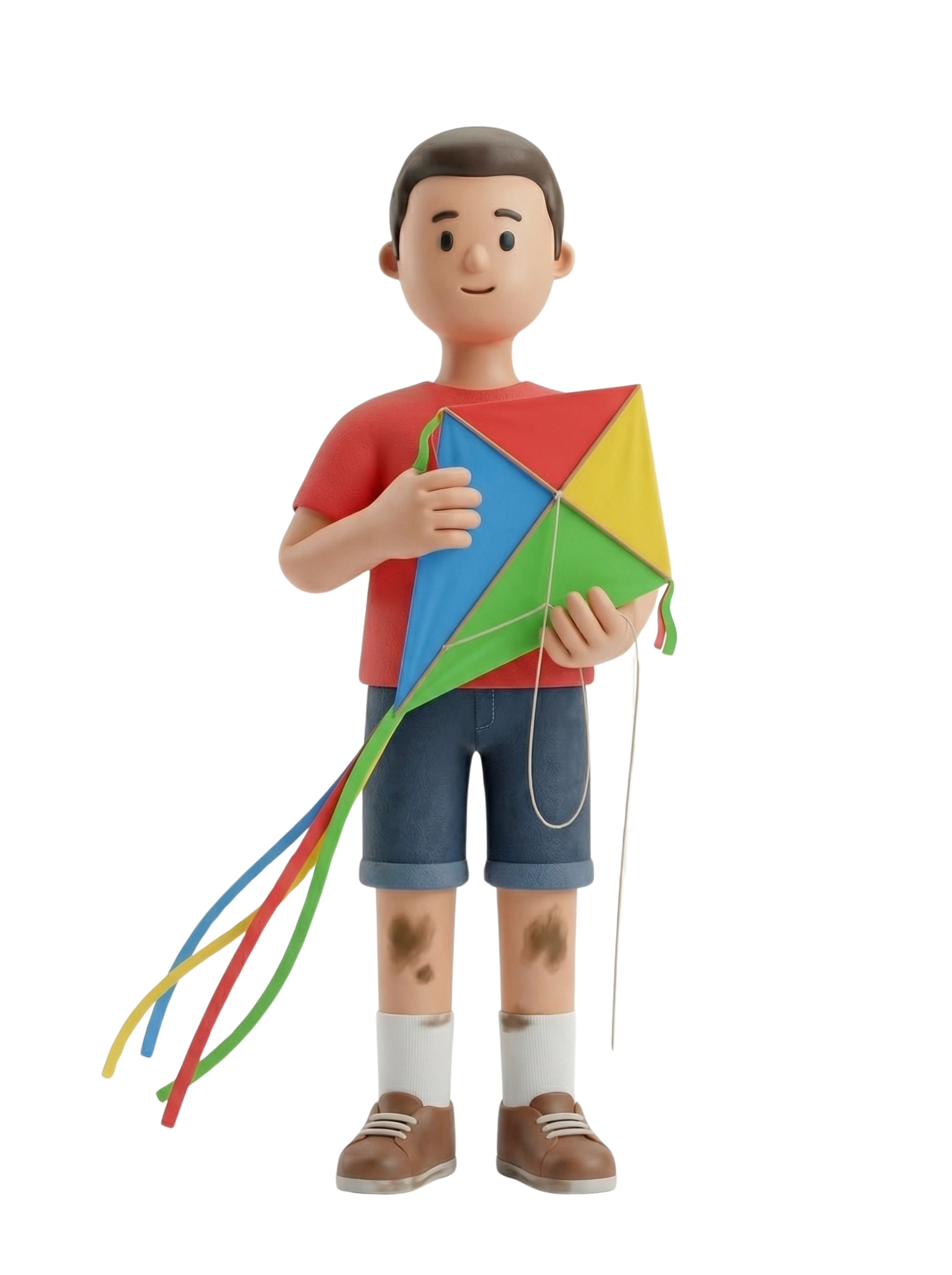 A cheerful young boy enjoys a carefree outdoor play session, holding a vibrant kite ready for flight, capturing the innocence and joy of childhood adventures.