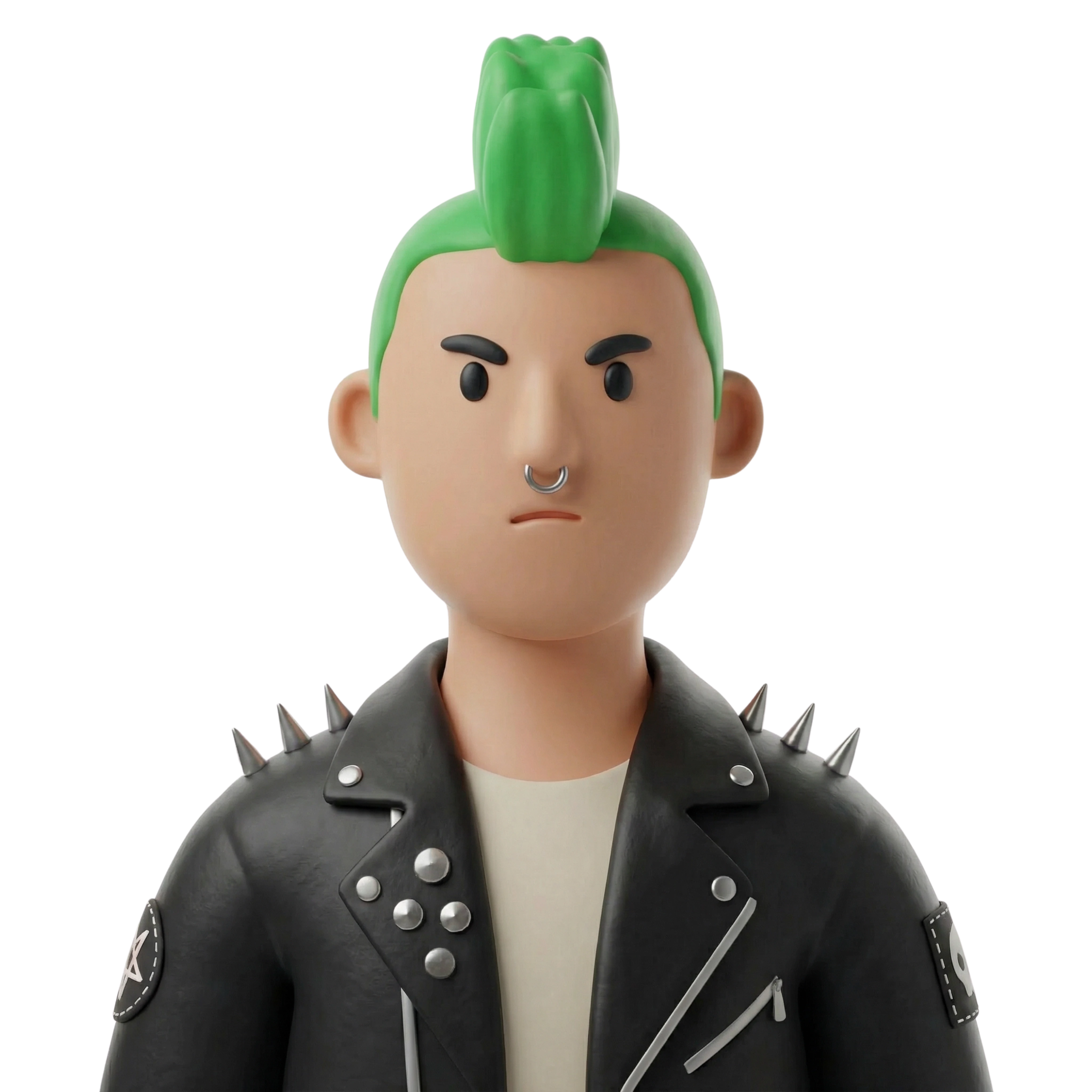 A rebellious punk rocker showcasing bold style and attitude, wearing a spiked leather jacket and expressing a fierce musical identity rooted in underground subcultures.