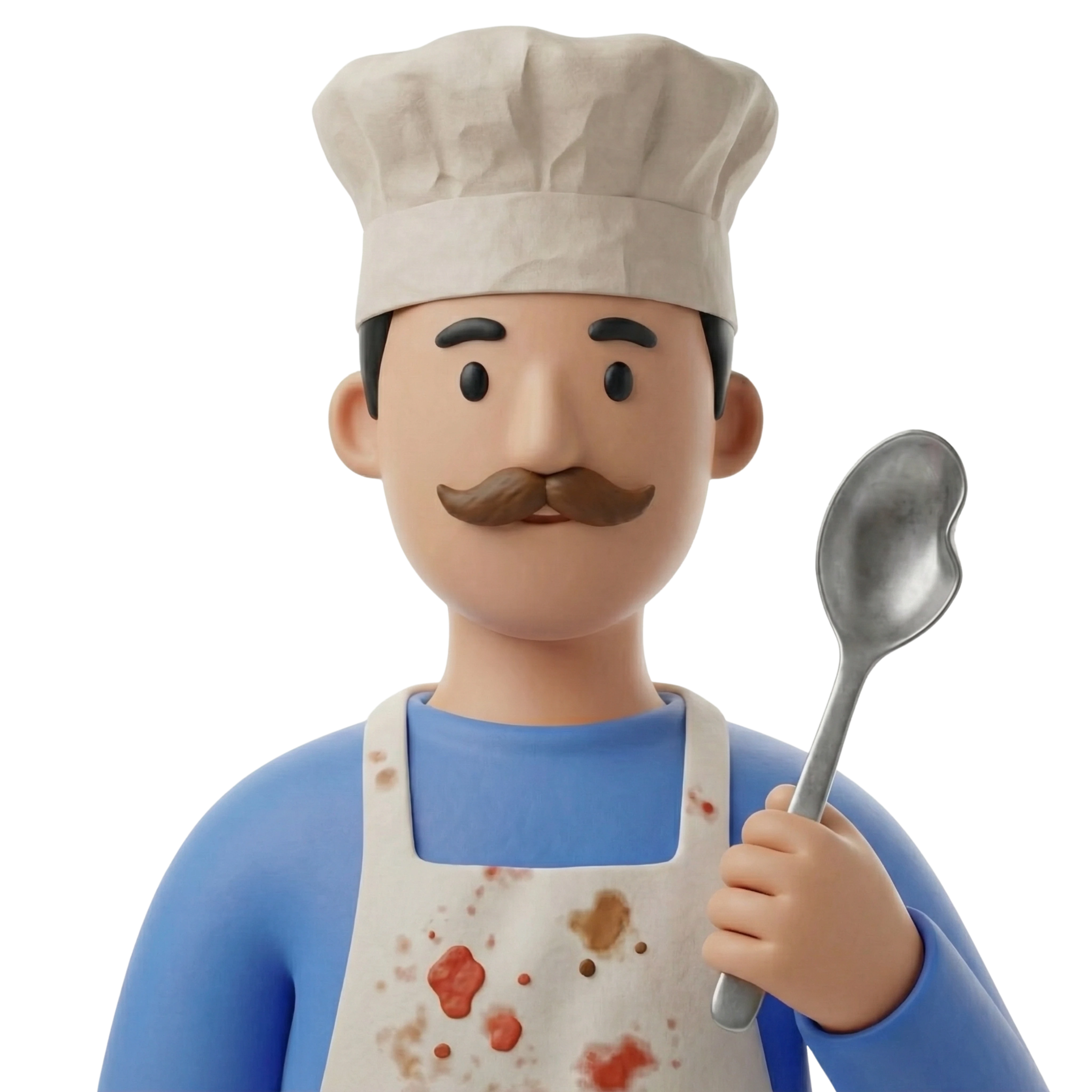 A vibrant street food chef passionately presenting his culinary craft, dressed in a stained apron and classic chef's hat, ready to serve flavorful dishes with flair.