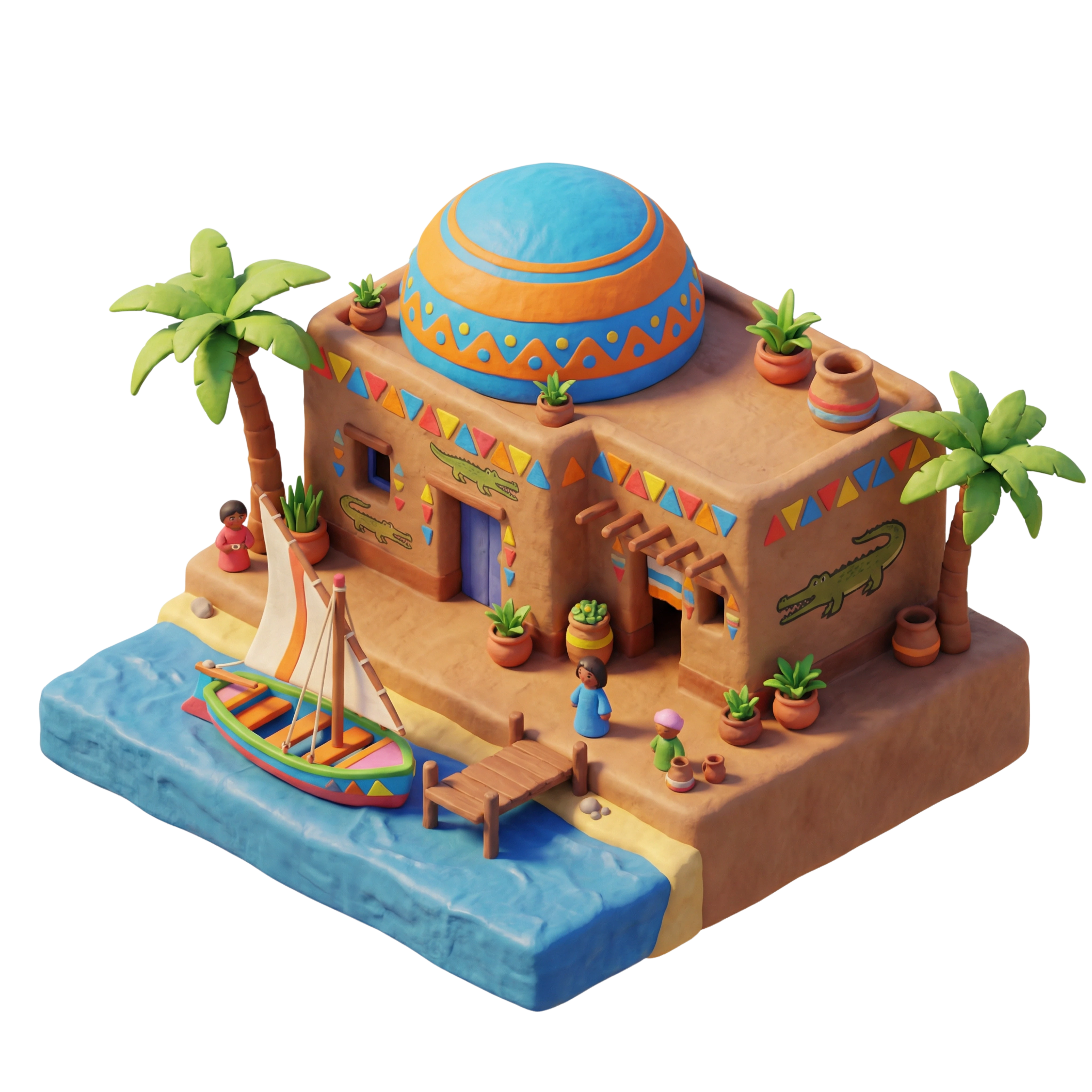 تقع على ضفاف نهر النيل، وتُعد القرية النوبية في أسوان مثالاً رائعاً على العمارة النوبية التقليدية، حيث تتميز بأسقفها المقببة، وجدرانها الطينية المزينة برسومات يدوية زاهية. تعكس هذه القرية تراثاً عريقاً يمزج بين الرموز الأفريقية والنقوش الفرعونية، وتُجسد ارتباط سكانها الوثيق بالنيل والطبيعة المحيطة.