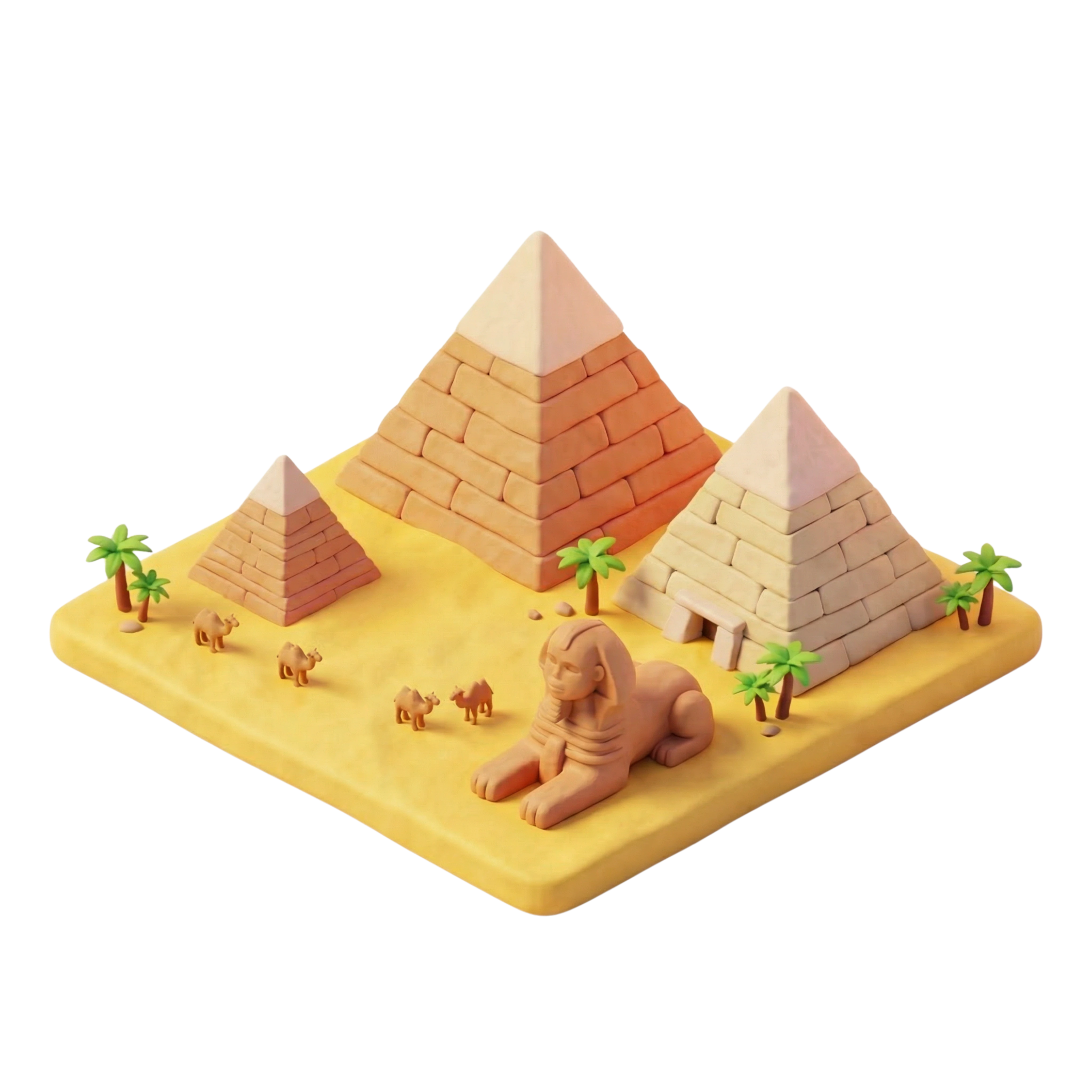 تنهض أهرامات الجيزة الكبرى وأبو الهول من رمال الصحراء الذهبية لتشكل رمزًا خالدًا للحضارة المصرية القديمة. تعكس هذه الأعجوبة المعمارية عظمة الدولة القديمة ودقتها في بناء الصروح من الحجر الجيري، بينما يقف أبو الهول شامخًا بحضور غامض يحرس هذا الموقع التاريخي الخالد.