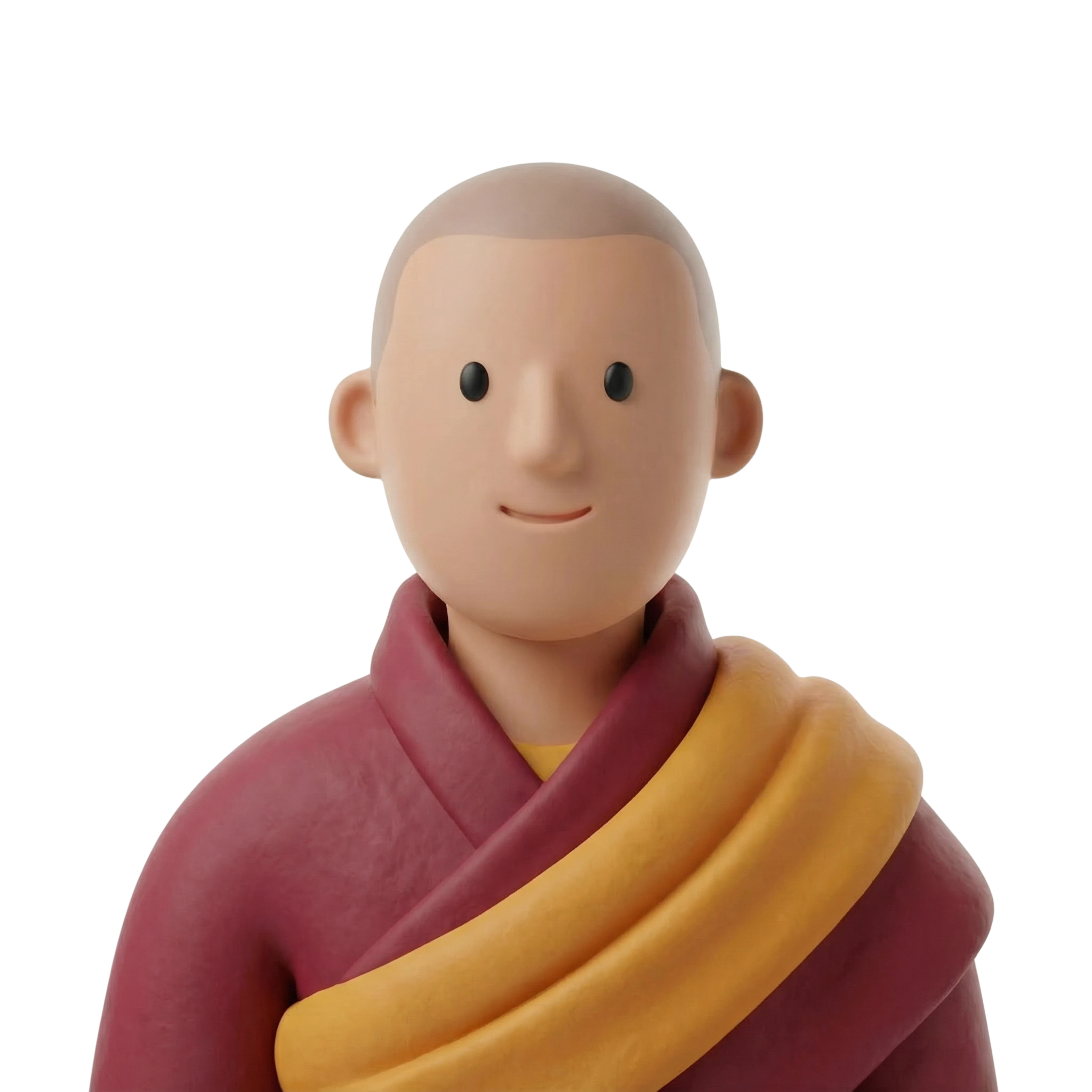 راهب تيبتي هادئ يرتدي الزي التقليدي، يرمز إلى التفاني الروحي والوعي الذهني من خلال التصميم البسيط والتعبير الهادئ.