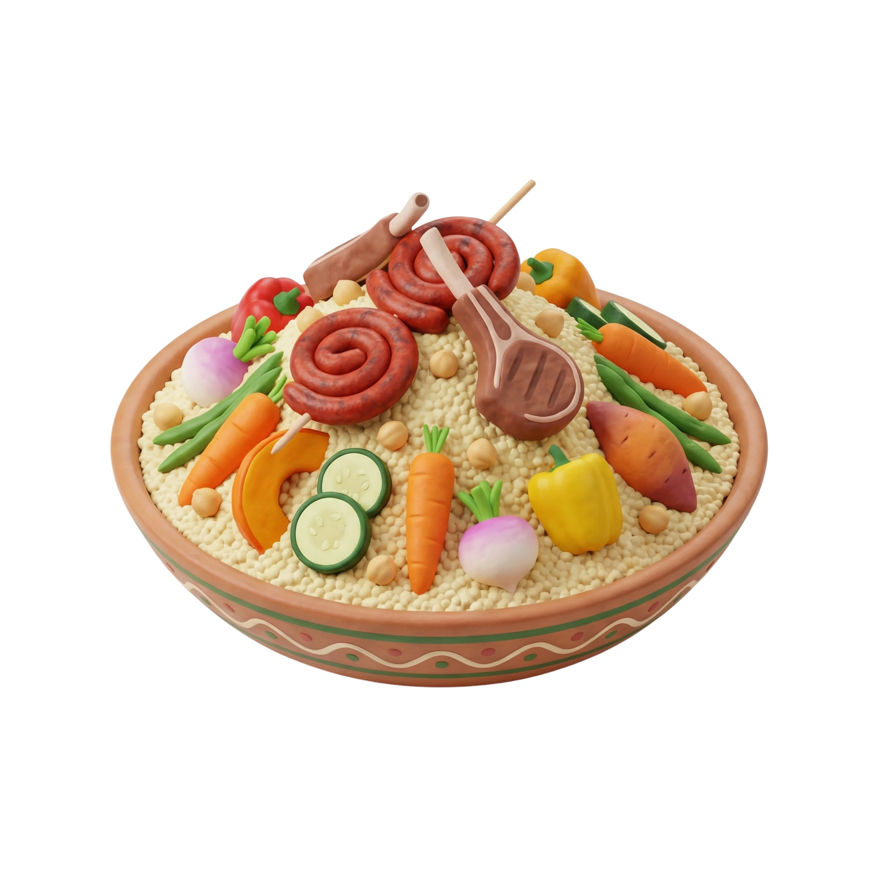 Traditional Couscous Royale with Grilled Meats and Vegetables