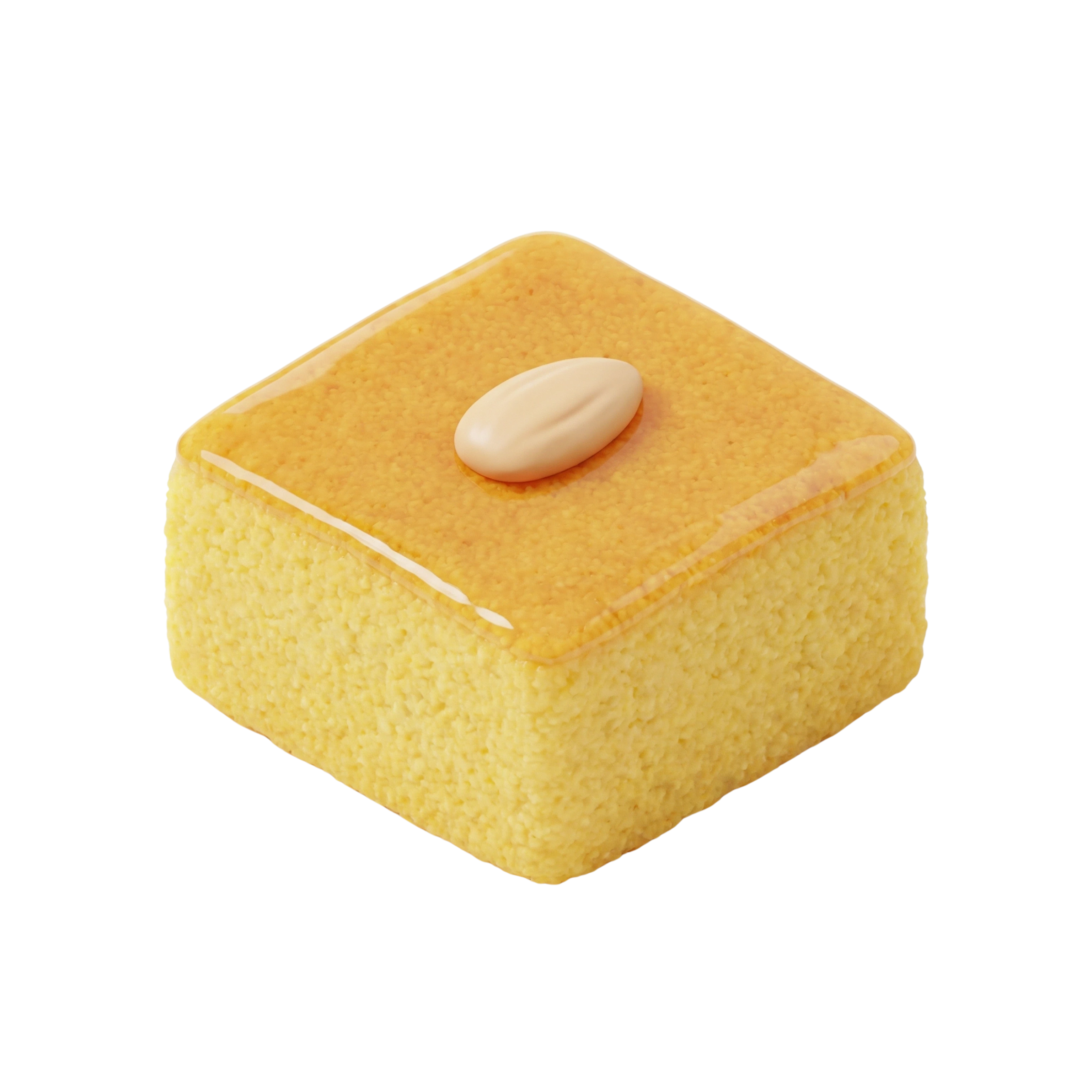 حلوى مصرية تقليدية مصنوعة من السميد، محلاة بشراب السكر المعطر ومزينة بحبة لوز كاملة. تتميز بقوامها الطري والمبلل وطعمها الغني بالزبدة مع لمسة من ماء الورد أو زهر البرتقال.