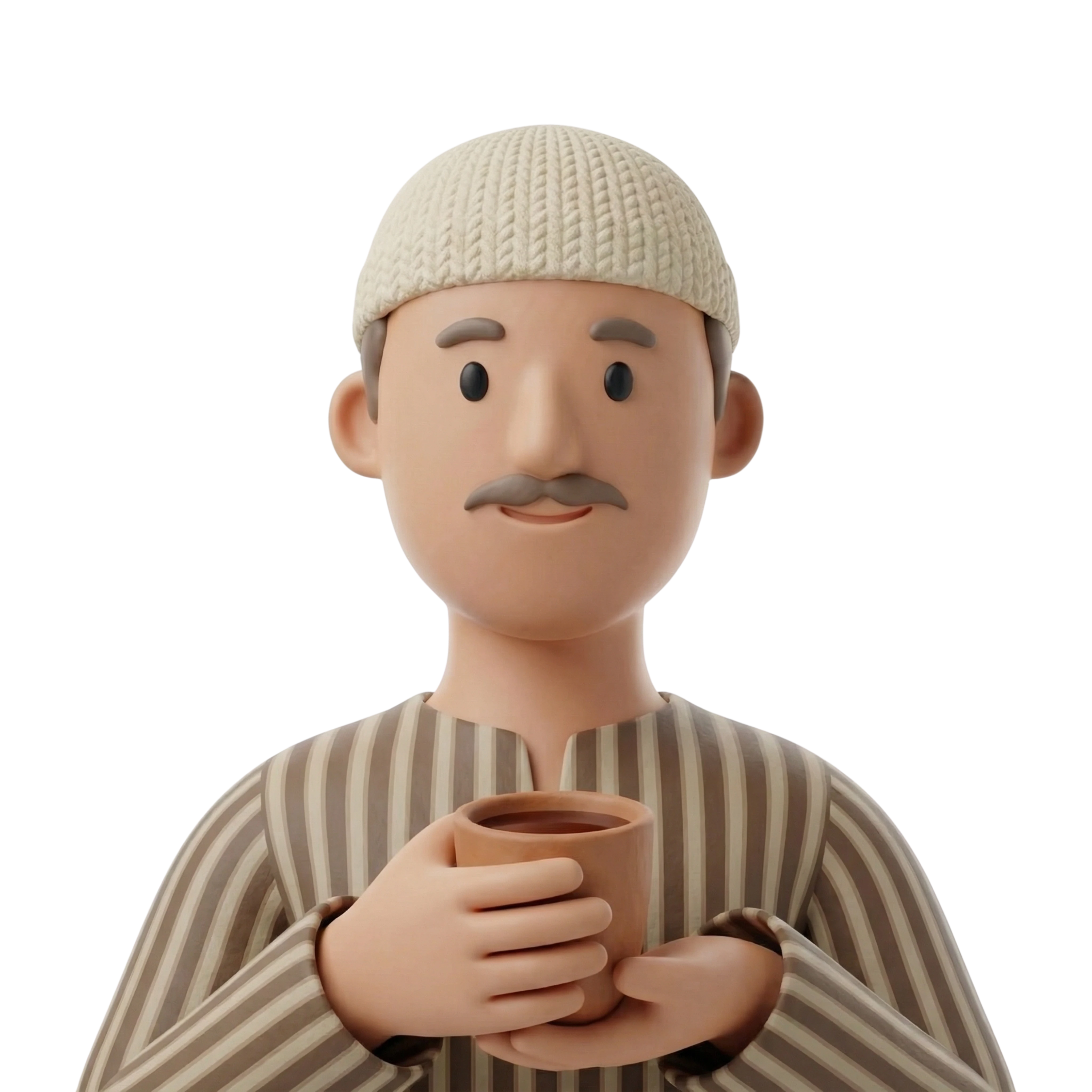 A warm-hearted Egyptian farmer enjoying a drink in traditional attire, symbolizing rural life and cultural heritage.